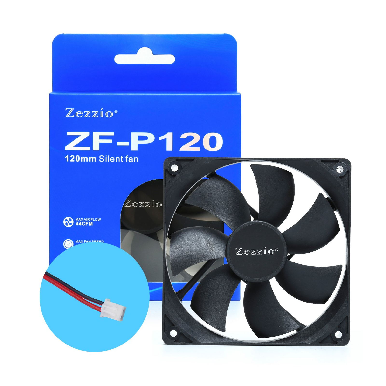 Вентилятори серії ZF-P120 2 Pin використовує технологію високопродуктивного гідродинамічного підшипника, який містять багато мастила і має можливість циркулювати його по поверхні тертя. Використання такої технології ефективно знижує знос підшипника та зменшує шум роботи вентилятора. Термін служби підшипника може досягати більше 40 000 годин, а рівень шуму – нижче 18 дБа за максимальних обертів. Вентилятор Zezzio ZF-P120 2 Pin має роз’єм під’єднання 2Пін і може використовуватися для охолодження стандартних комп’ютерних блоків живлення.