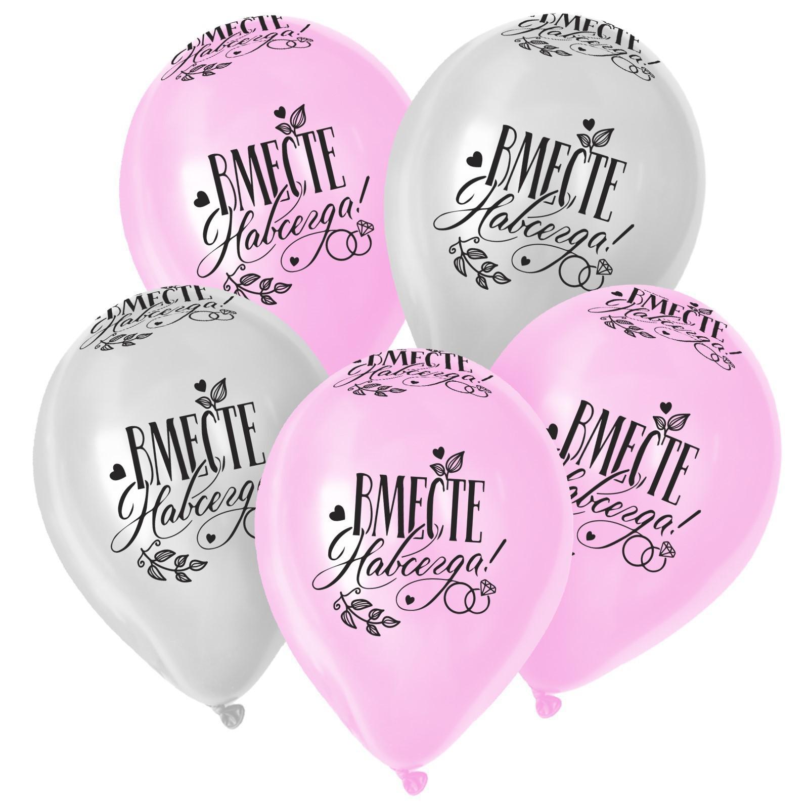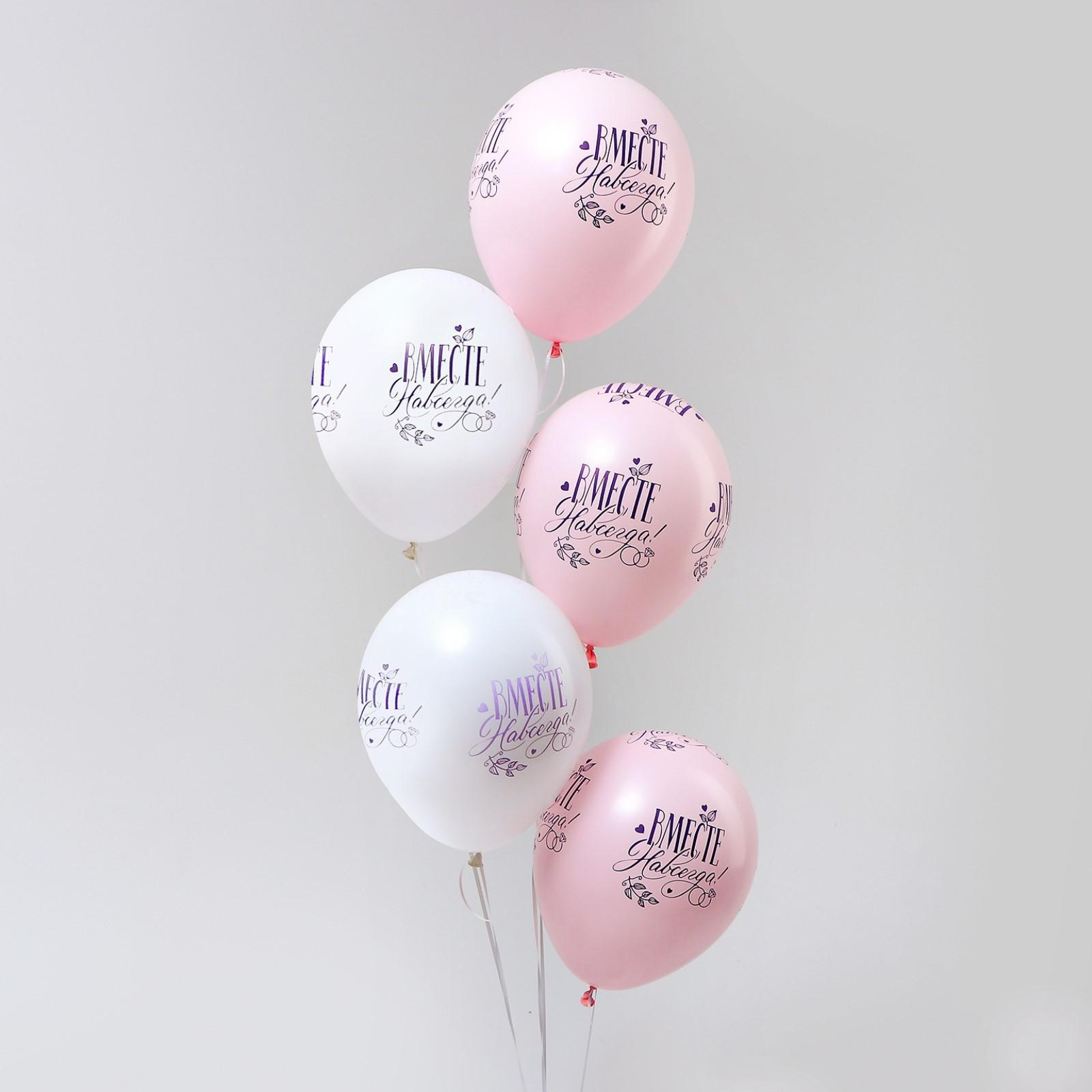 Шар латексный 12" «Вместе навсегда», пастель, набор 5 шт., цвет розовый, белый