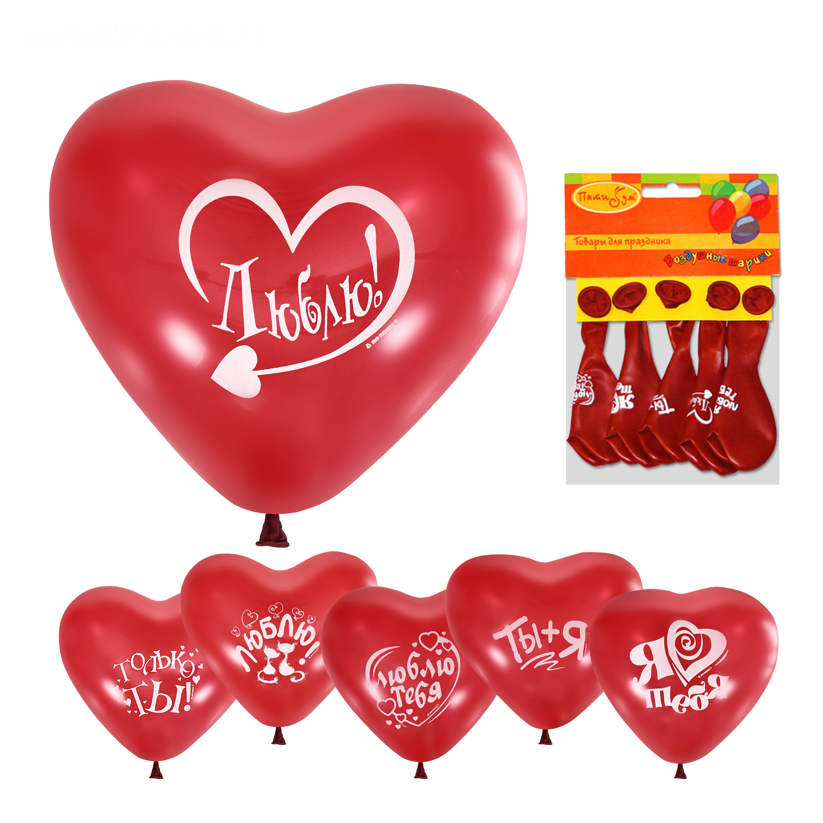 Шары латексные 10" «Красное сердце», набор 5 шт., виды МИКС