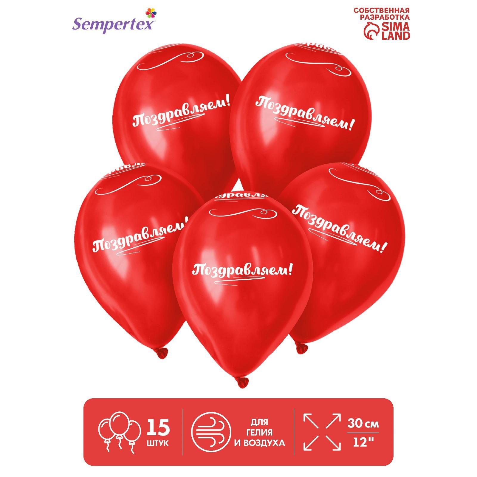 Шар латексный 12" «Поздравляем», пастель, набор 15 шт., цвета красный