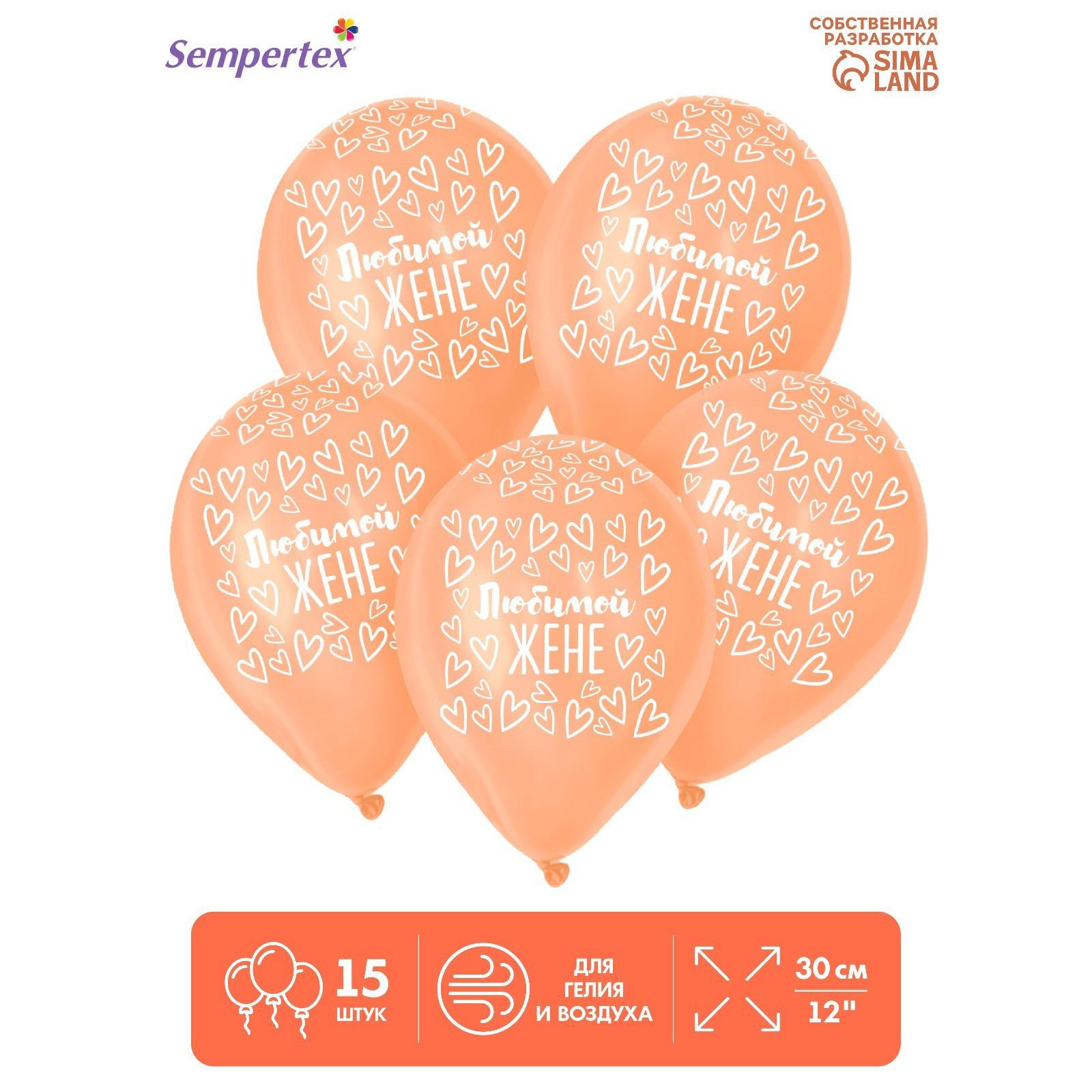 Шар латексный 12" «Любимой жене», пастель, набор 15 шт., цвет розовый