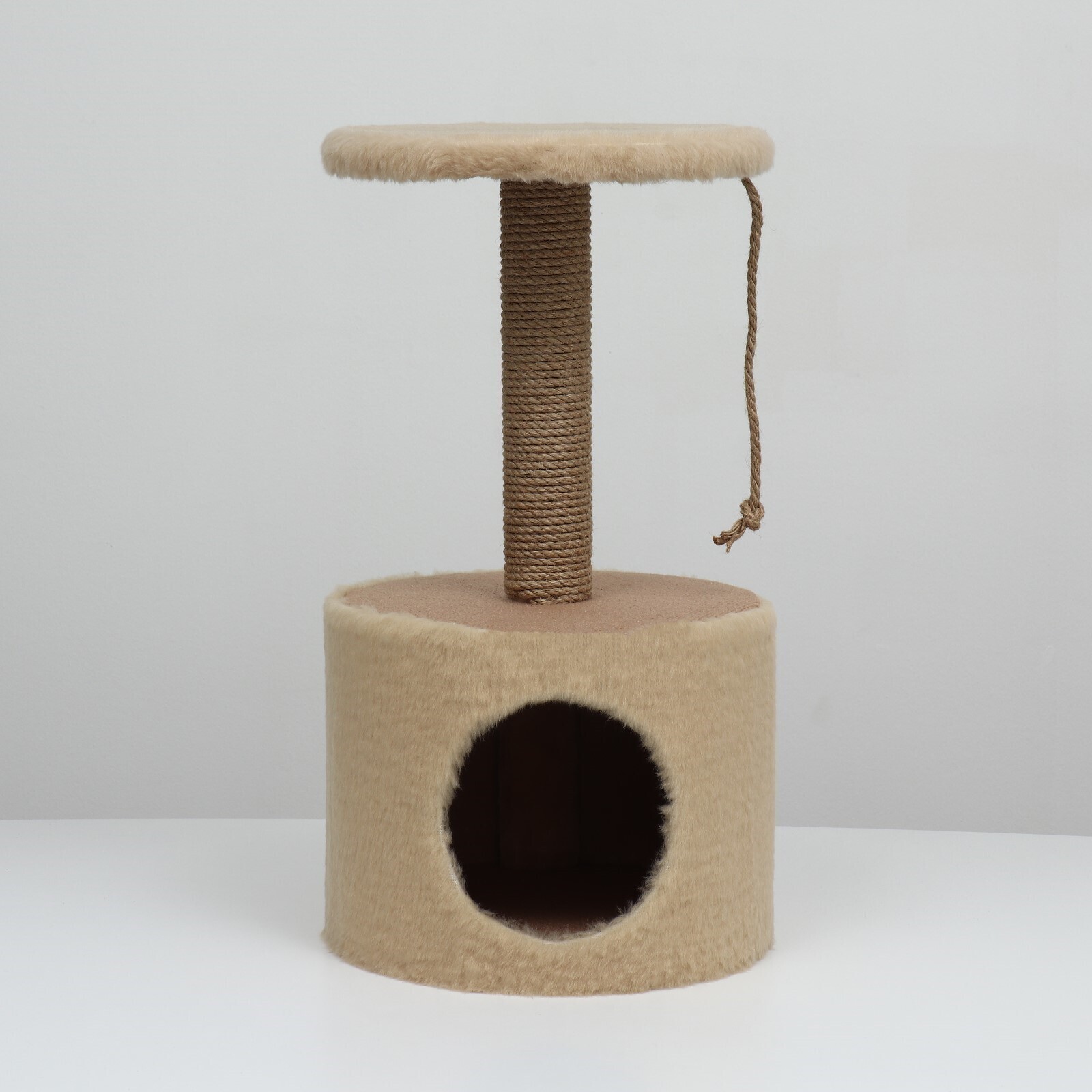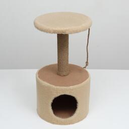 Домик с когтеточкой круглый, джут, 35 х 35 х 64 см, бежевый