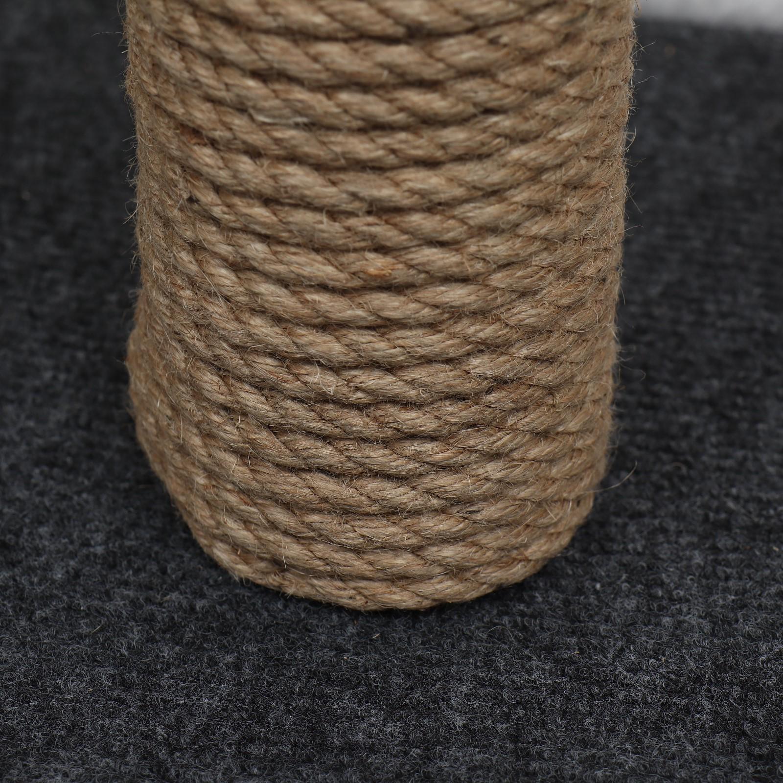 Столб-когтеточка установлена на конструкции, покрыта специальным материалом, который позволяет кошкам точить свои когти и предотвращает повреждение мебели в доме.