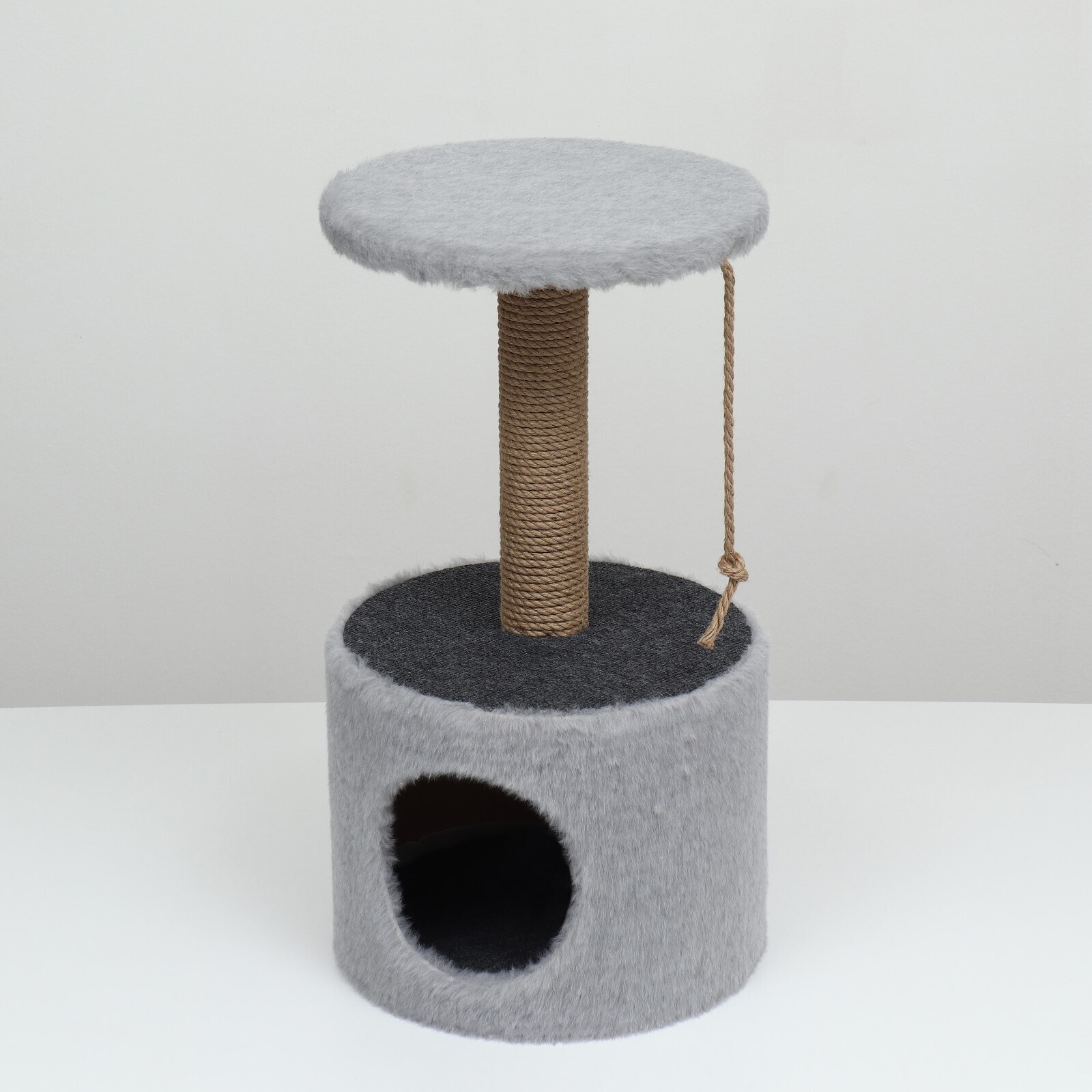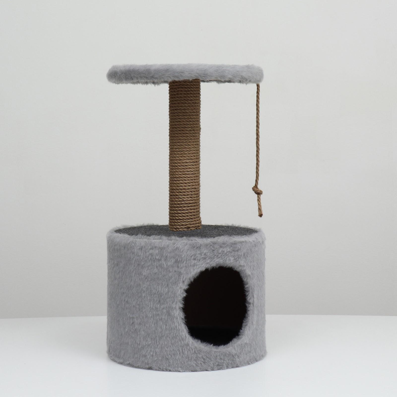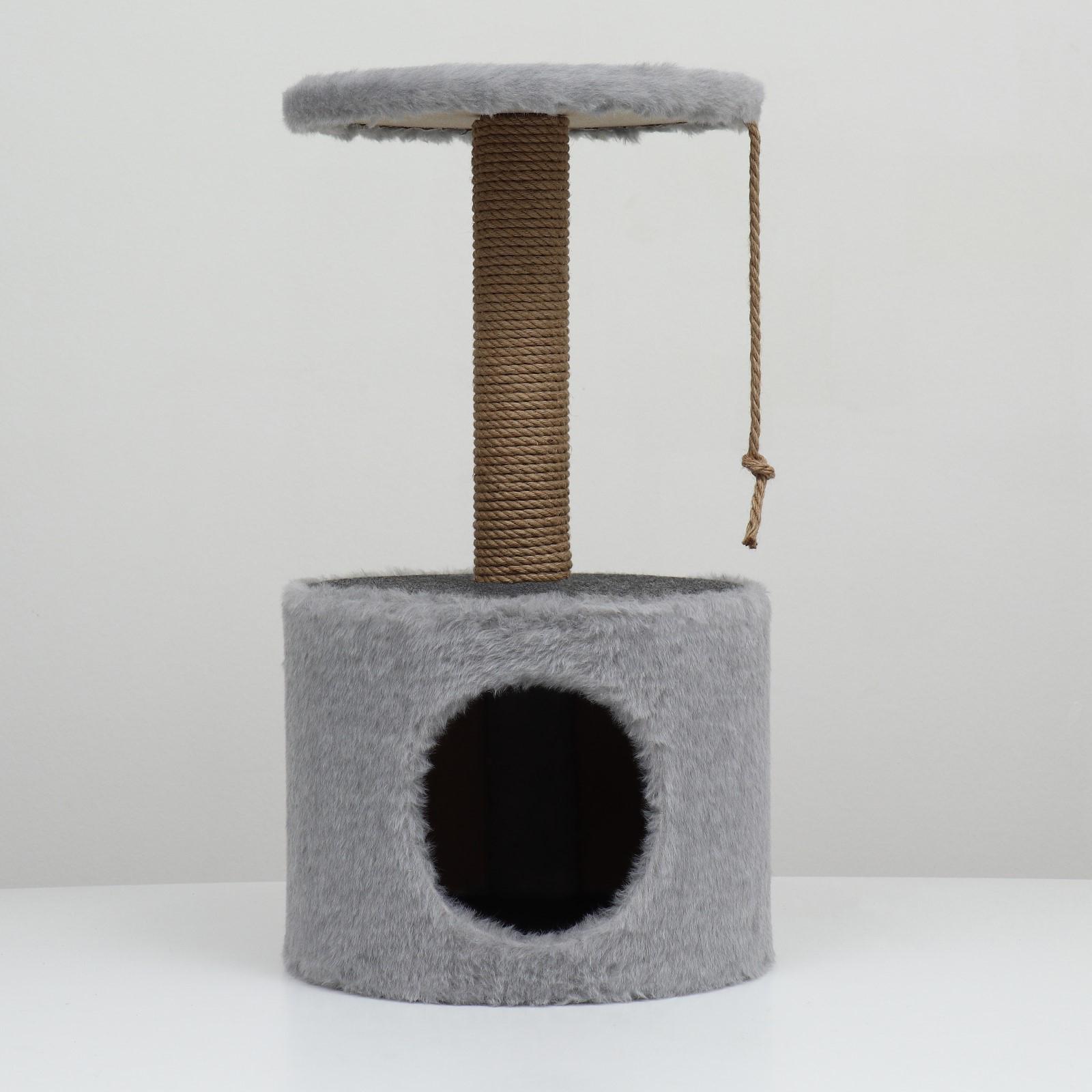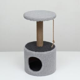 Домик с когтеточкой круглый, джут, 35 х 35 х 64 см. серый
