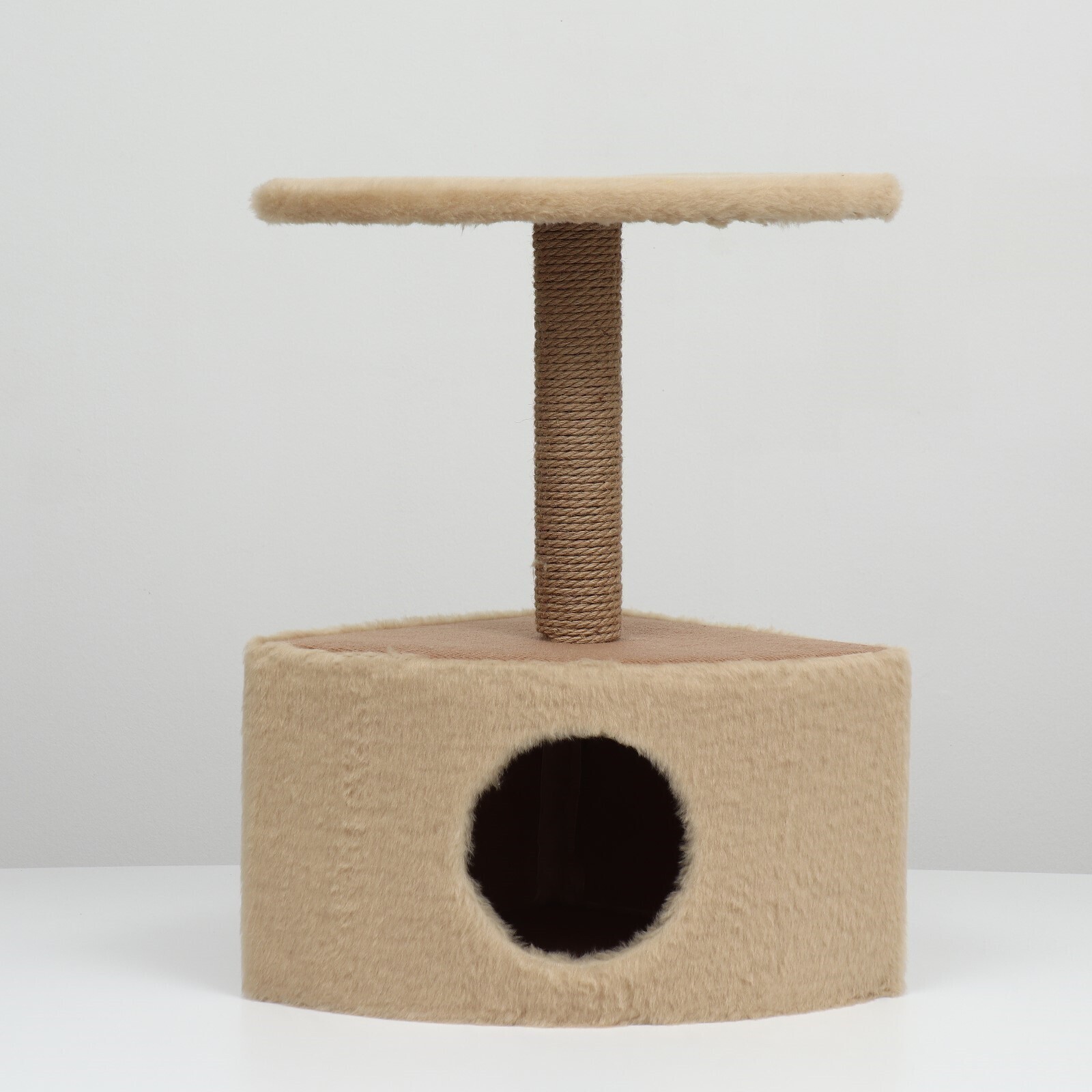 Домик угловой для животных, джут, 35 х 35 х 64 см, бежевый
