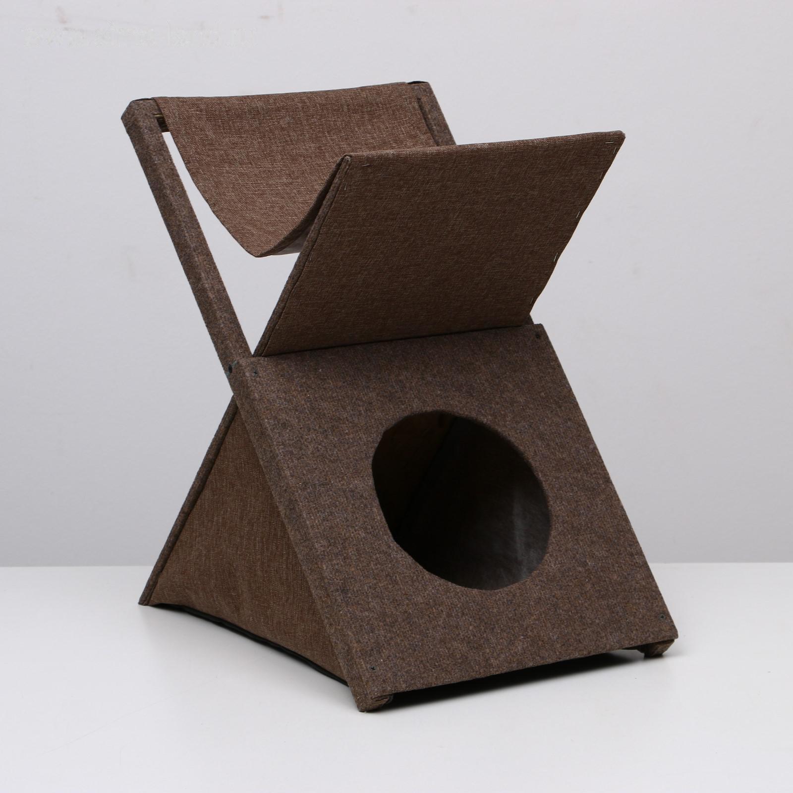Домик-когтеточка раскладной с гамаком "Икс", микс цветов, ковролин