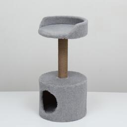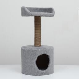 Дом-когтеточка с лежаком круглый, джут, 35 х 35 х 70 см, серый