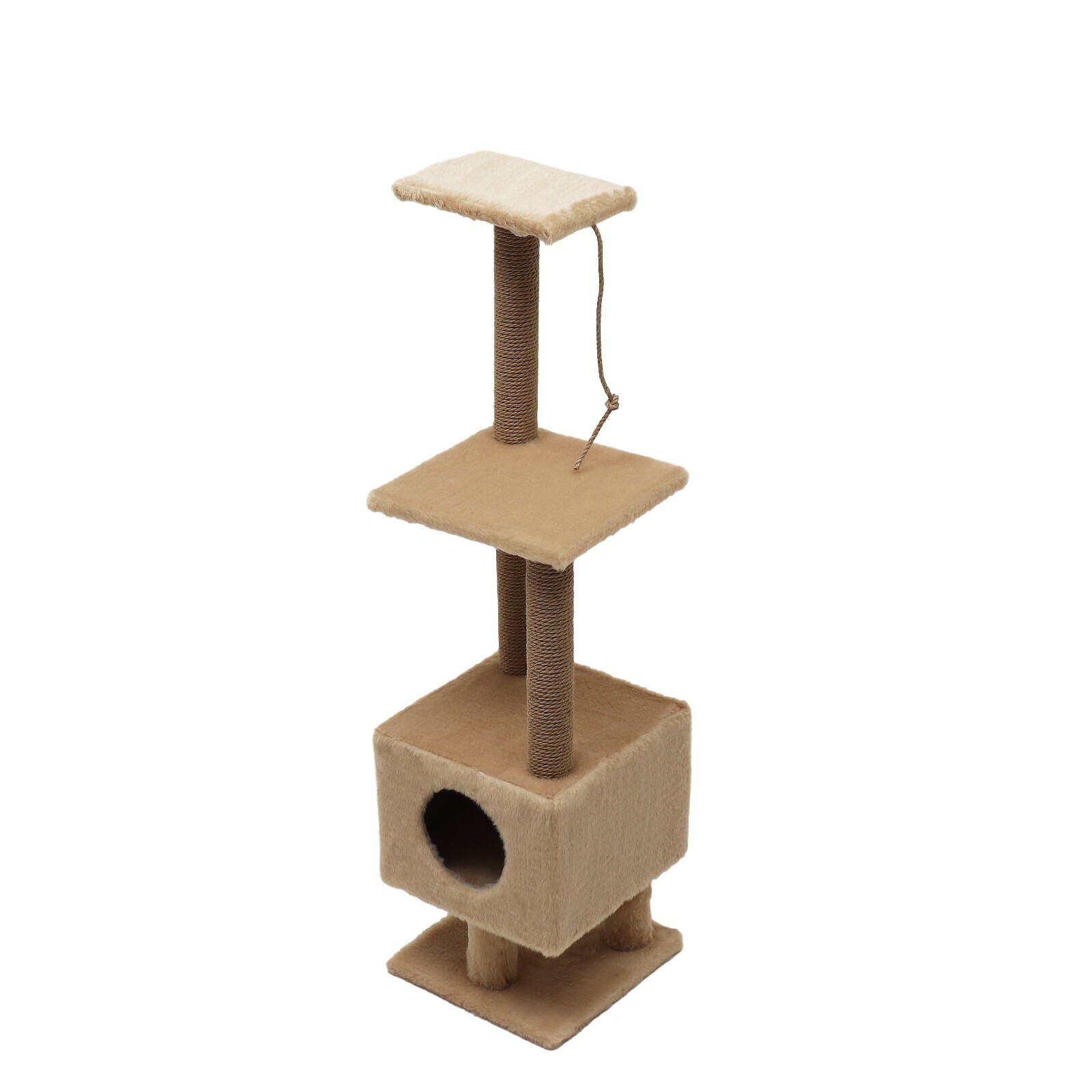 Комплекс с домиком и 2 полками на основании, джут, 37 х 37 х 120 см, бежевый