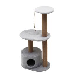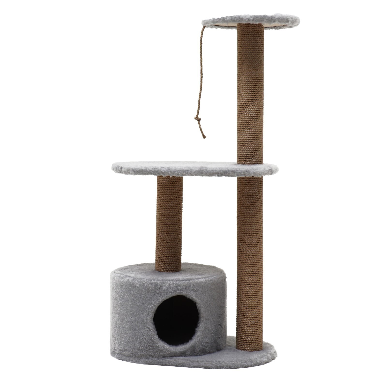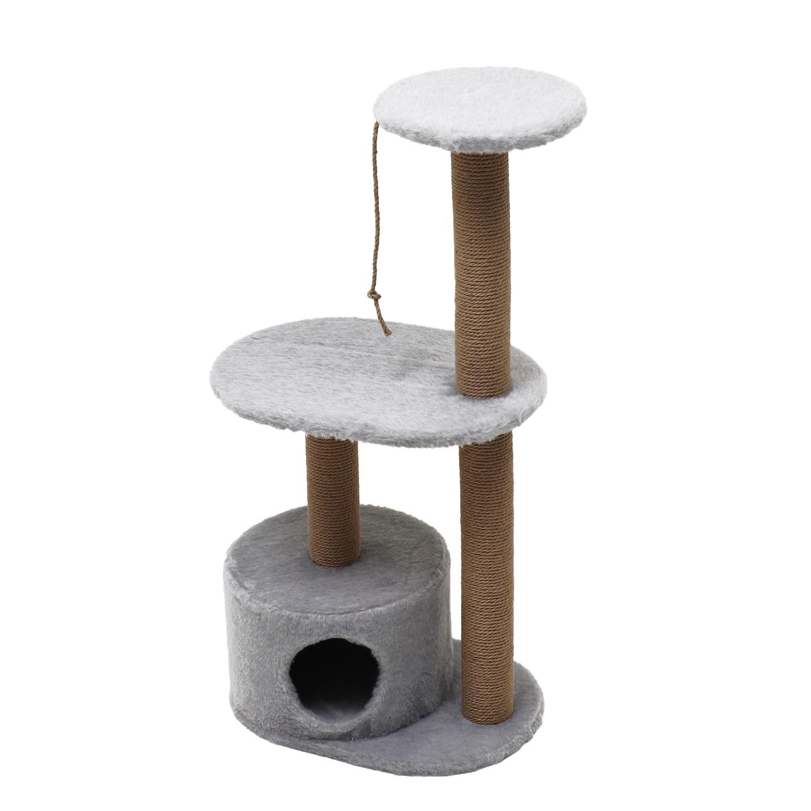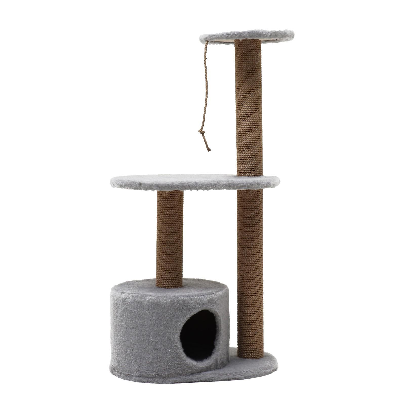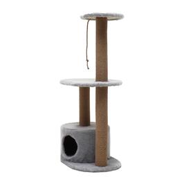 Комплекс с круглым домом, 2 полками, когтеточками, джут, 60 х 40 х 100 см, серый
