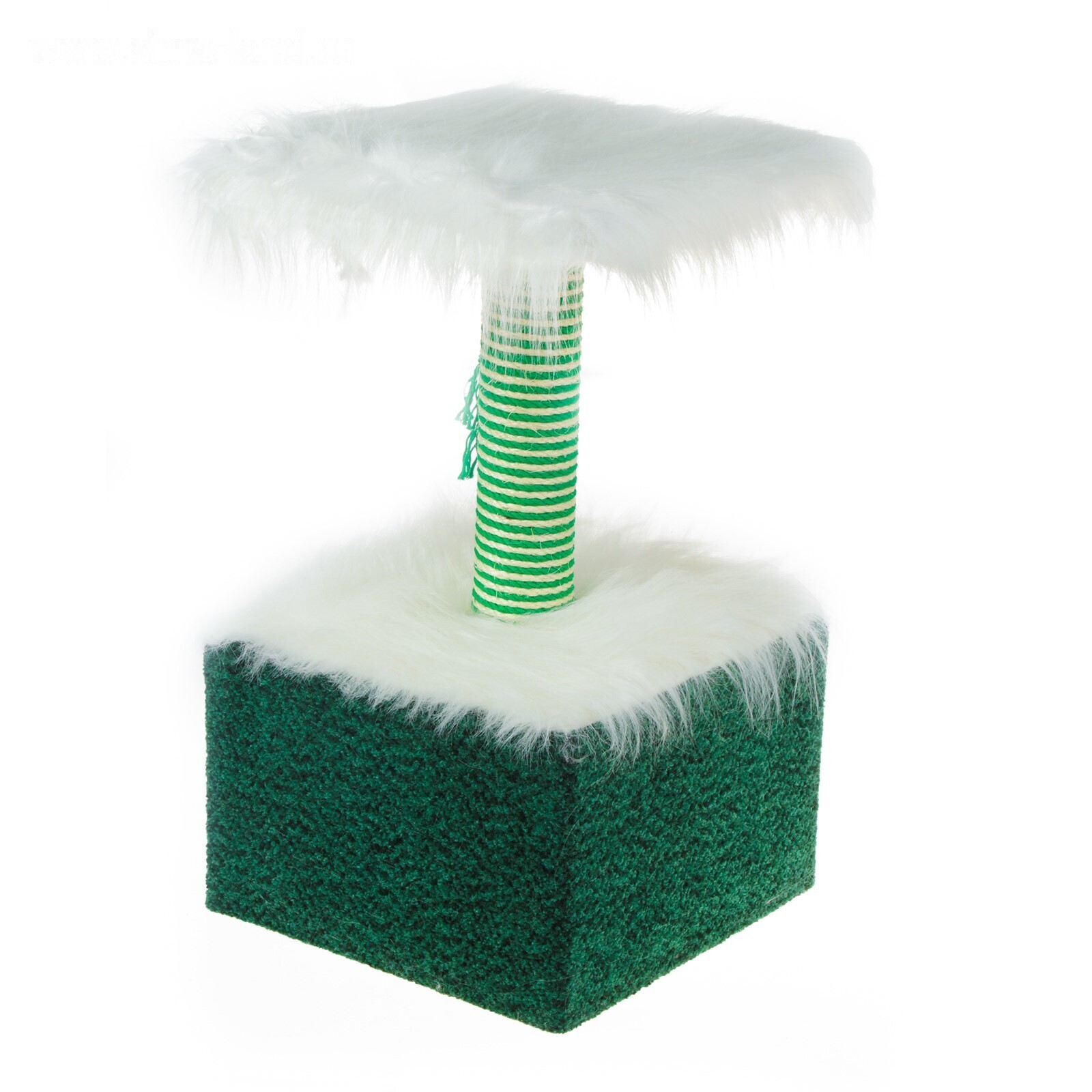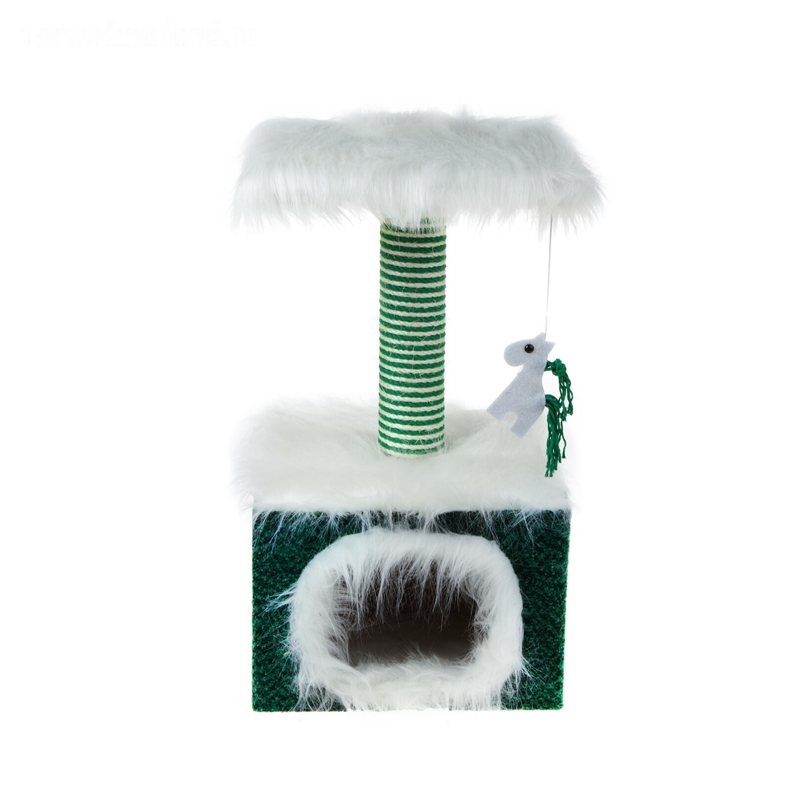 Домик маленький для кошек, мех/велюр, 34 х 34 х 60 см, зеленый