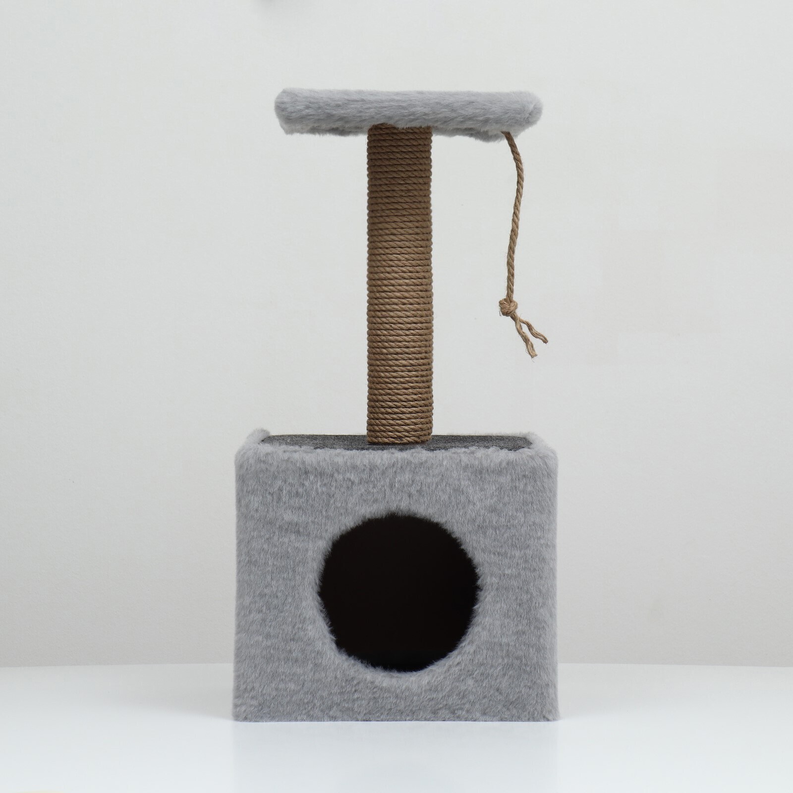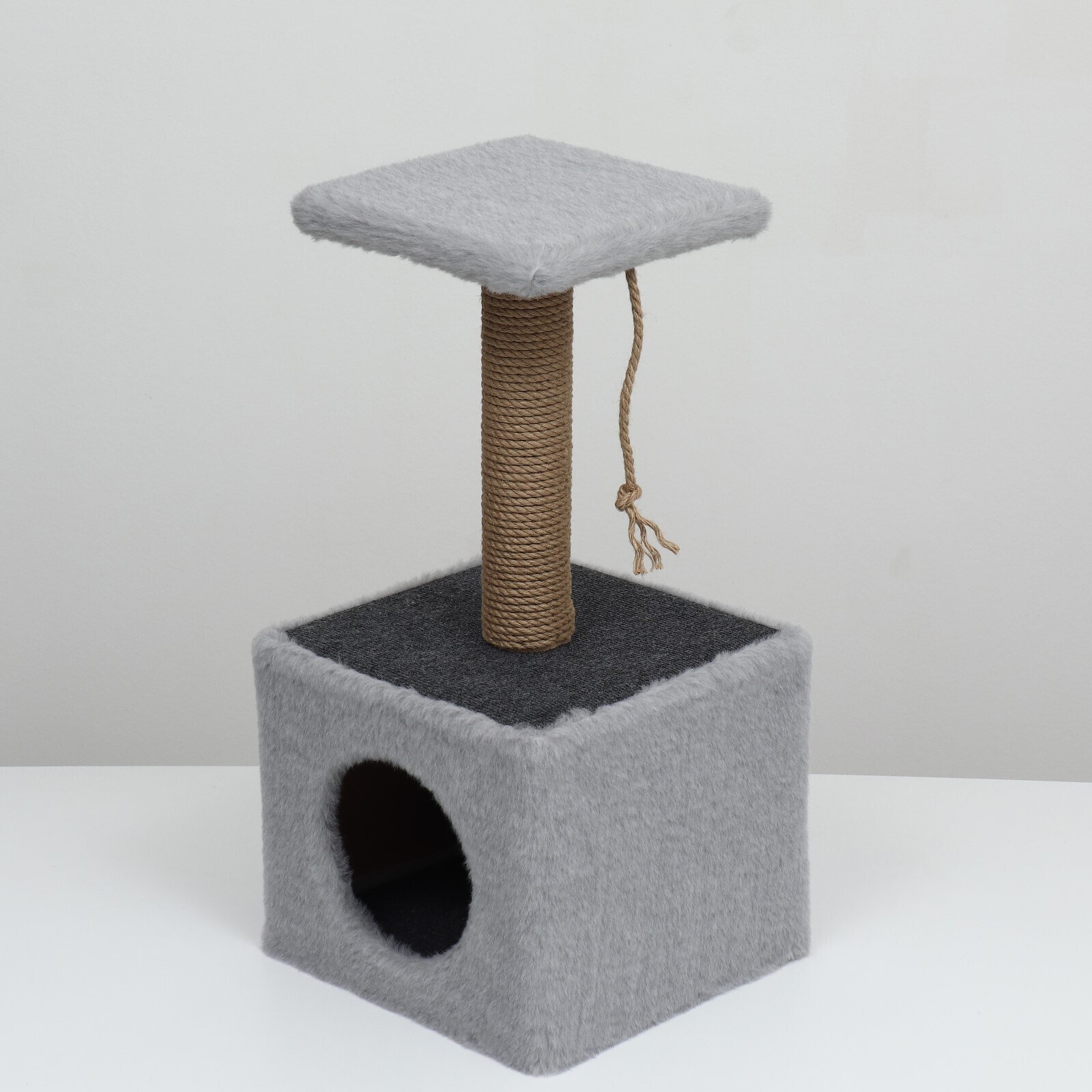 Домик для животных с полкой, джут, 32 х 32 х 64 см, серый