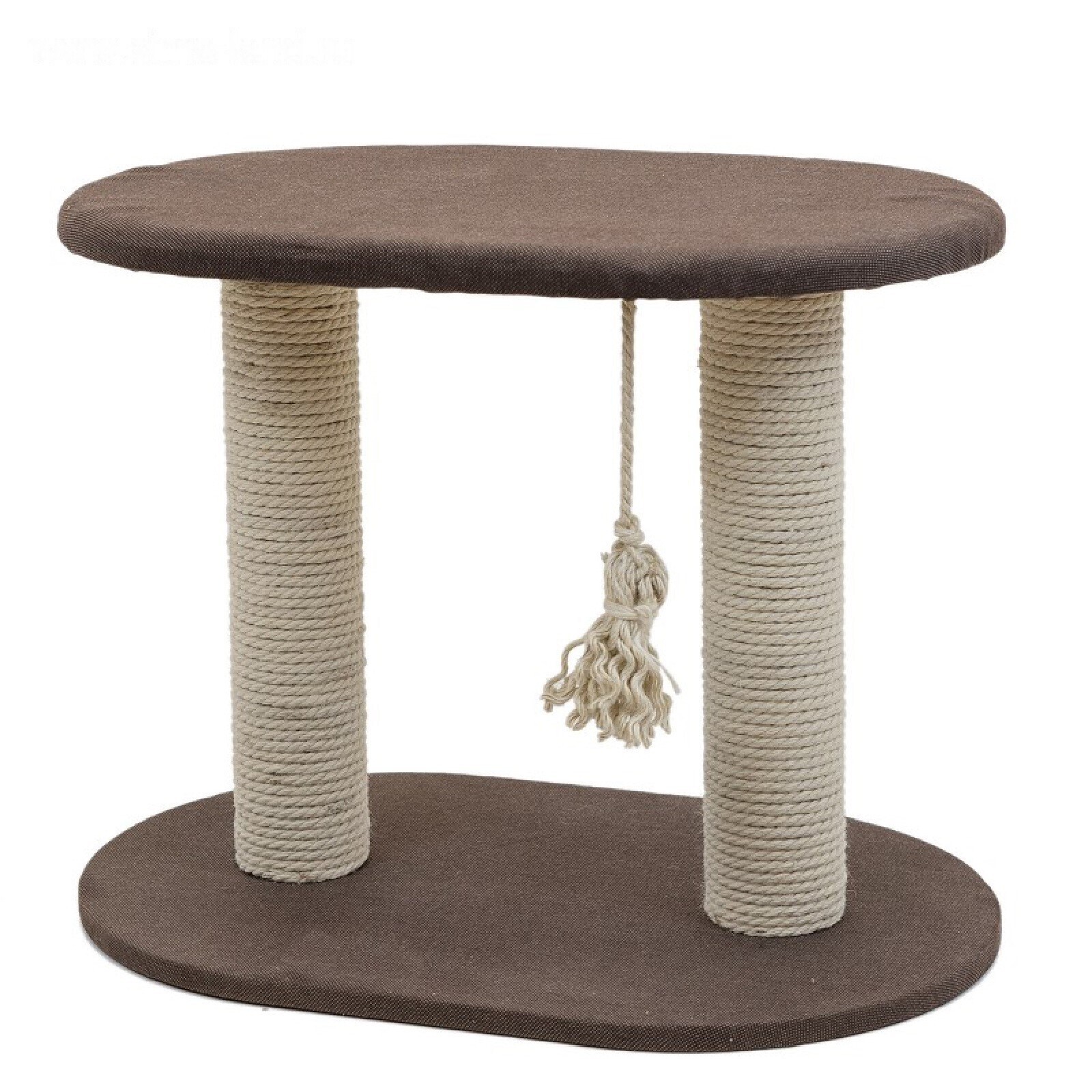 Когтеточка "Кантри" овальная, 2 столбика, 65 х 43 х 51 см, джут белёный, рогожка, микс