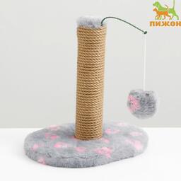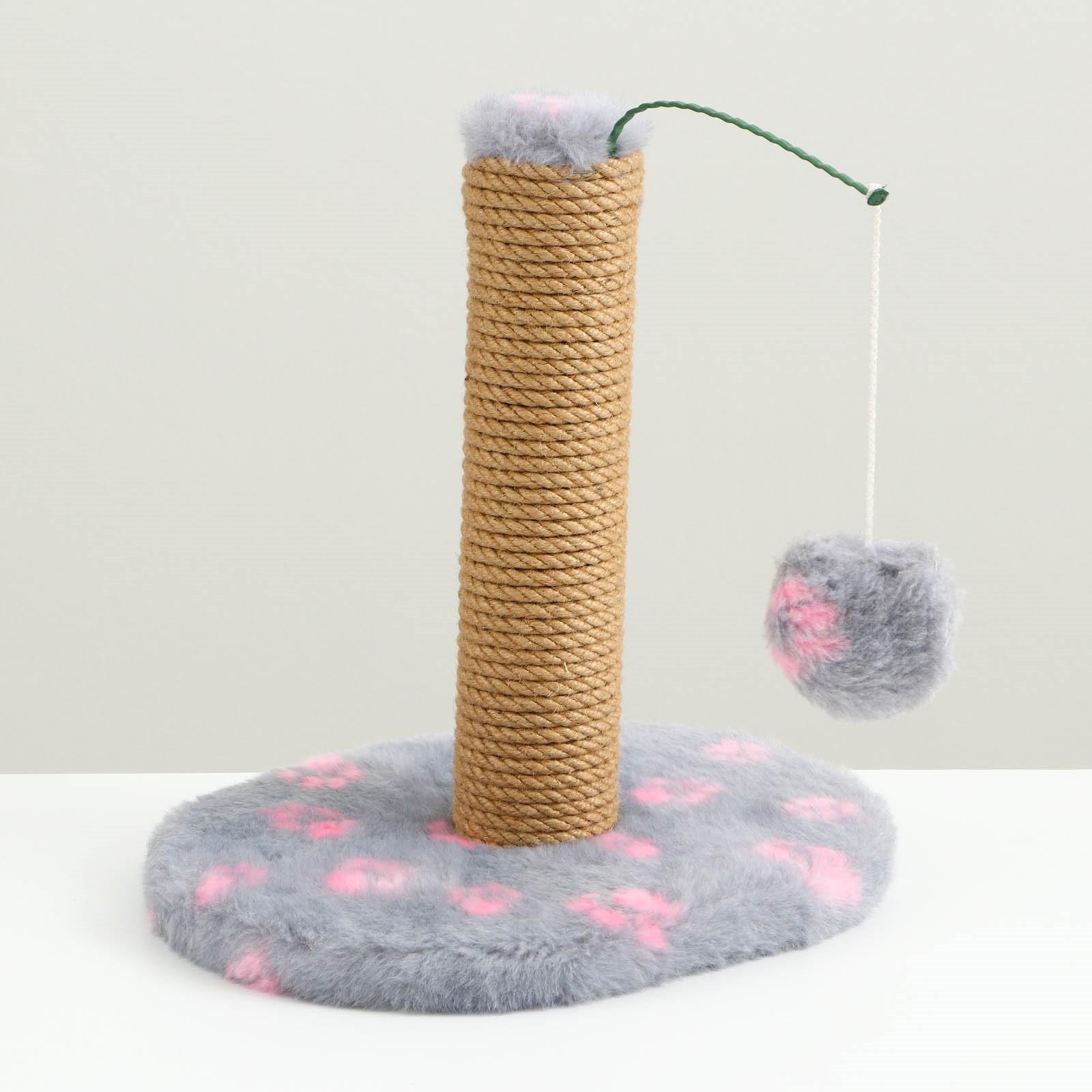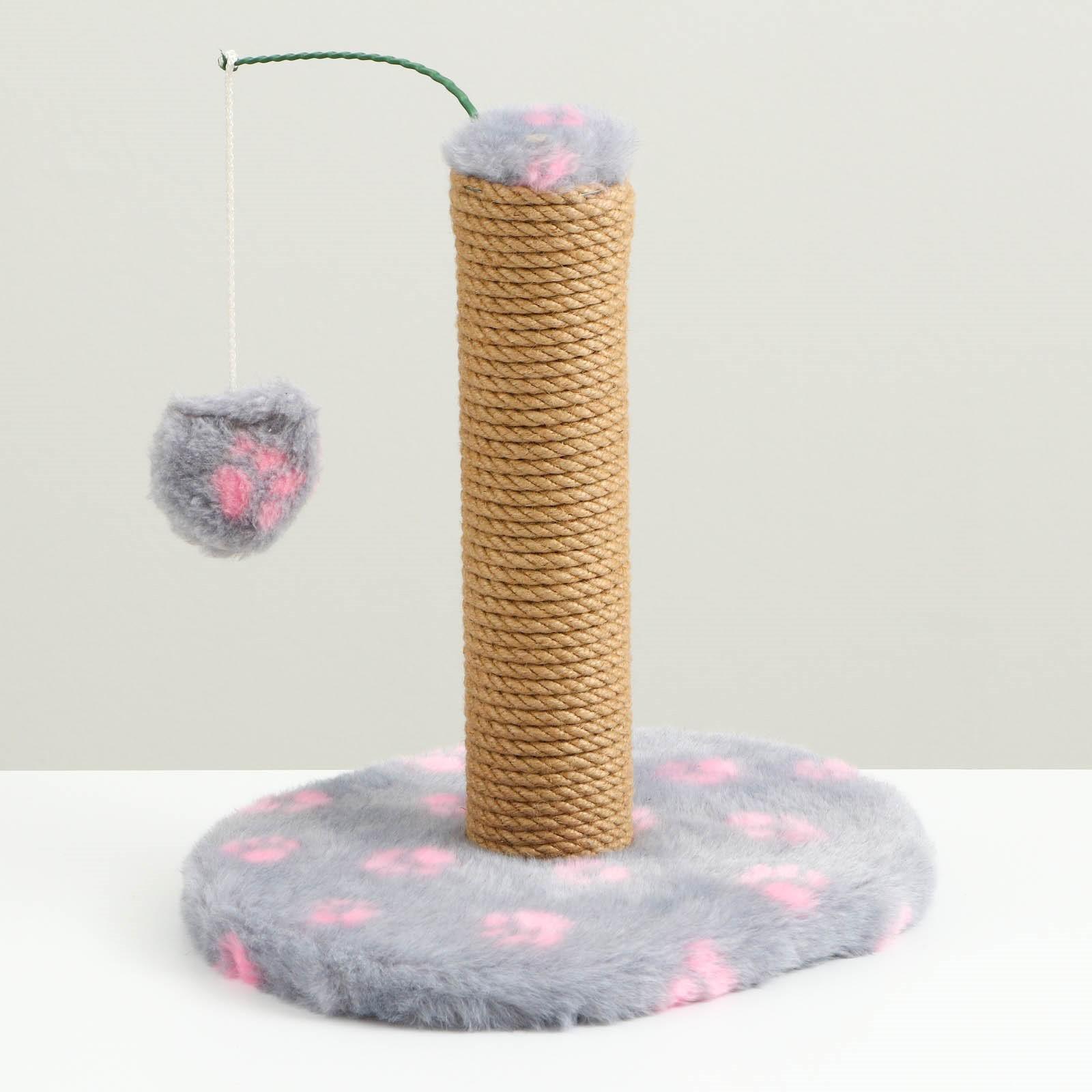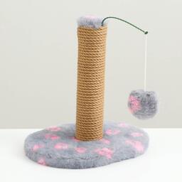 Когтеточка для котят на подставке, джут, темно серая с розовыми лапками, 30 х 24 х 35 см