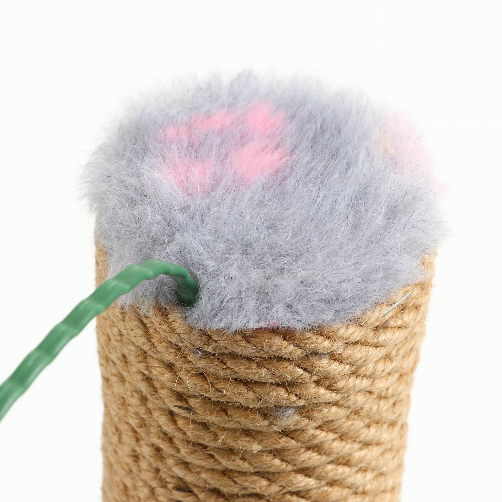 На верхушке столбика прикреплена игрушка на веревке, которая двигается, когда кошка ее трогает. Э
