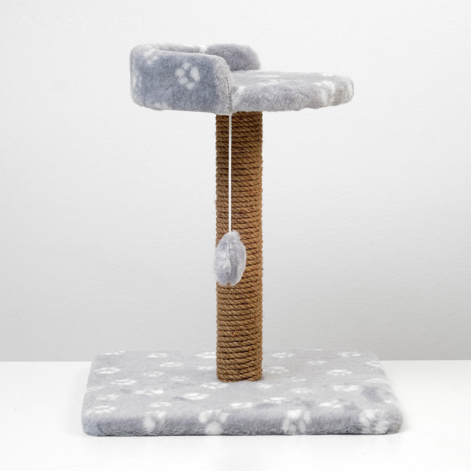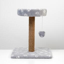 Когтеточка малая "Арена" с игрушкой, 40 х 40х 55 см, джут, серая с лапками