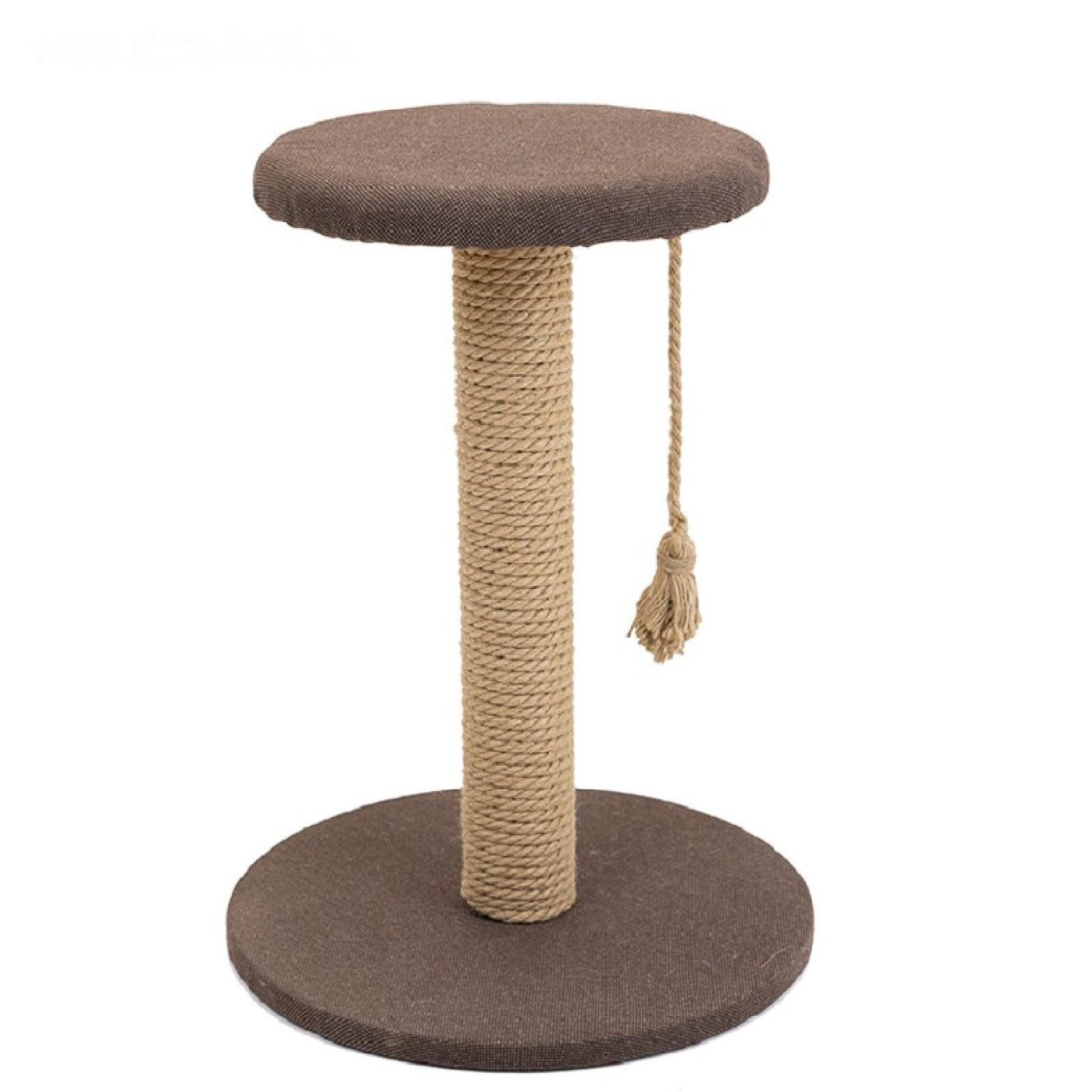 Когтеточка-столбик для котов «Кантри» с полкой, круглая, рогожка, джут, микс цветов, 37 х 37 х 49 см