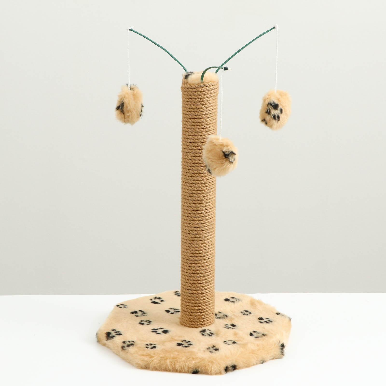 Когтеточка с тремя игрушками, 35 х 35 х 53 см, бежевая с черными лапками