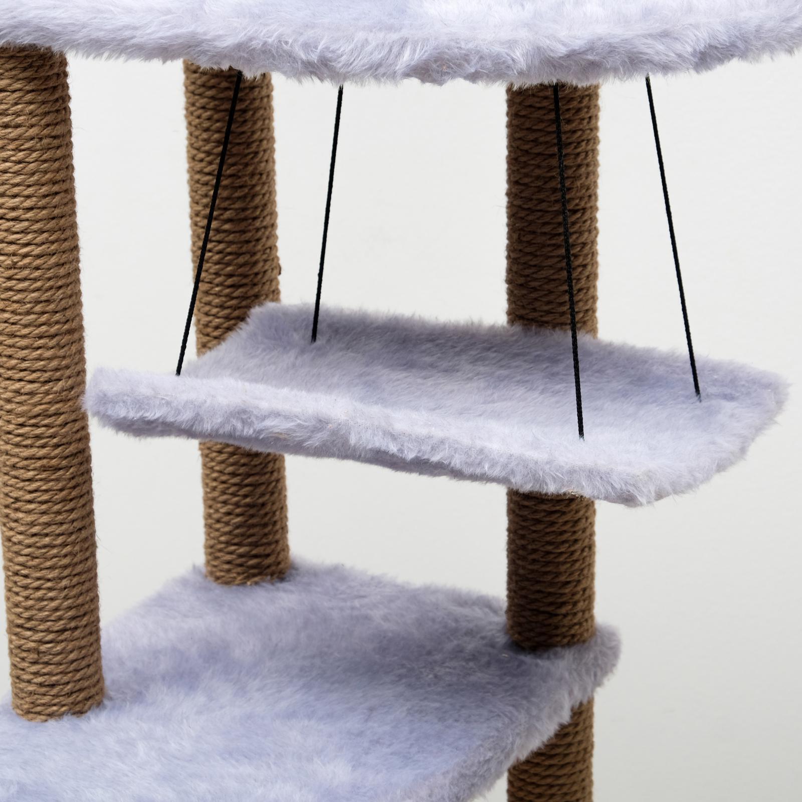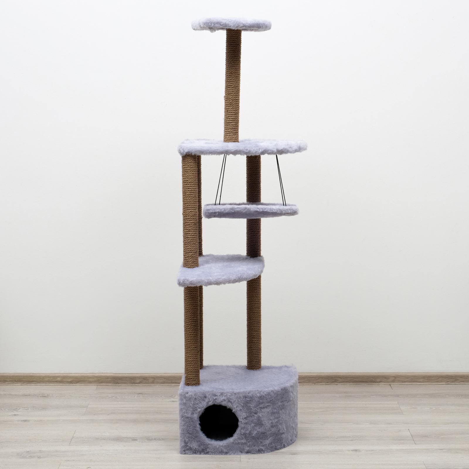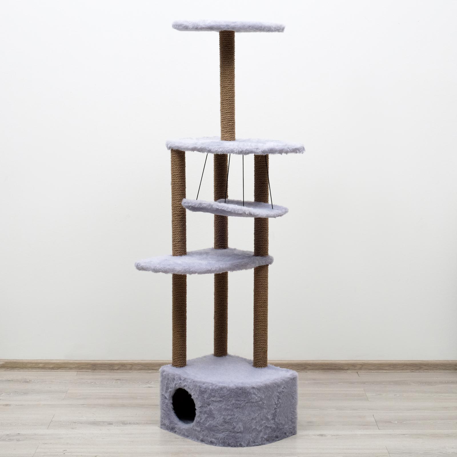 Комплекс-когтеточка угловой "Пижон" с гамаком, 48х48х171 см, джут, искусственный мех, серый