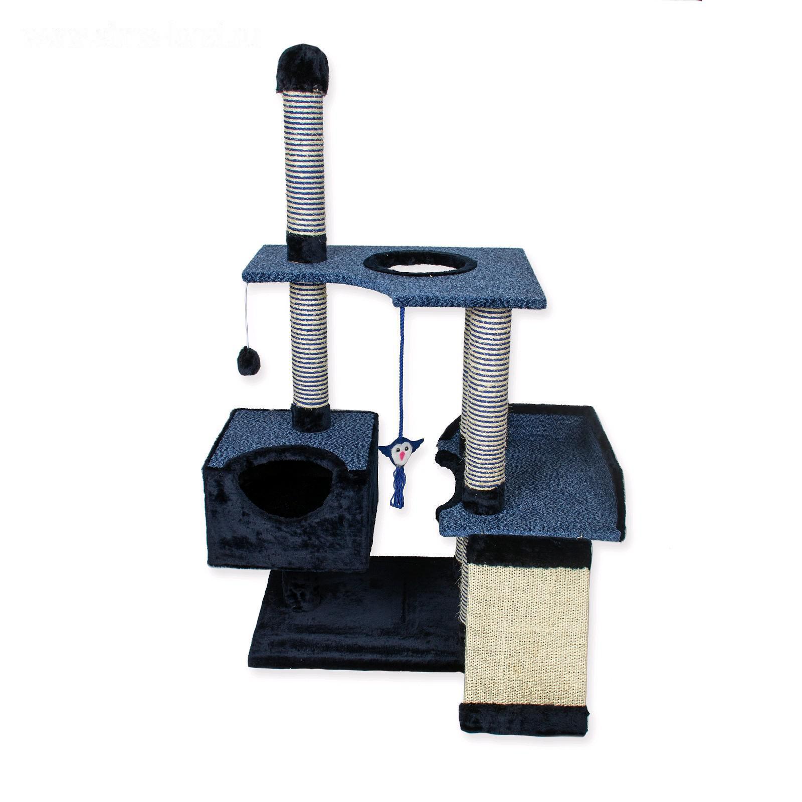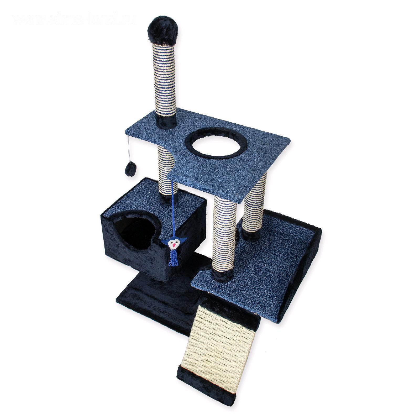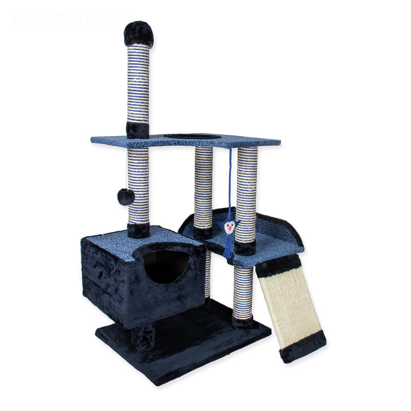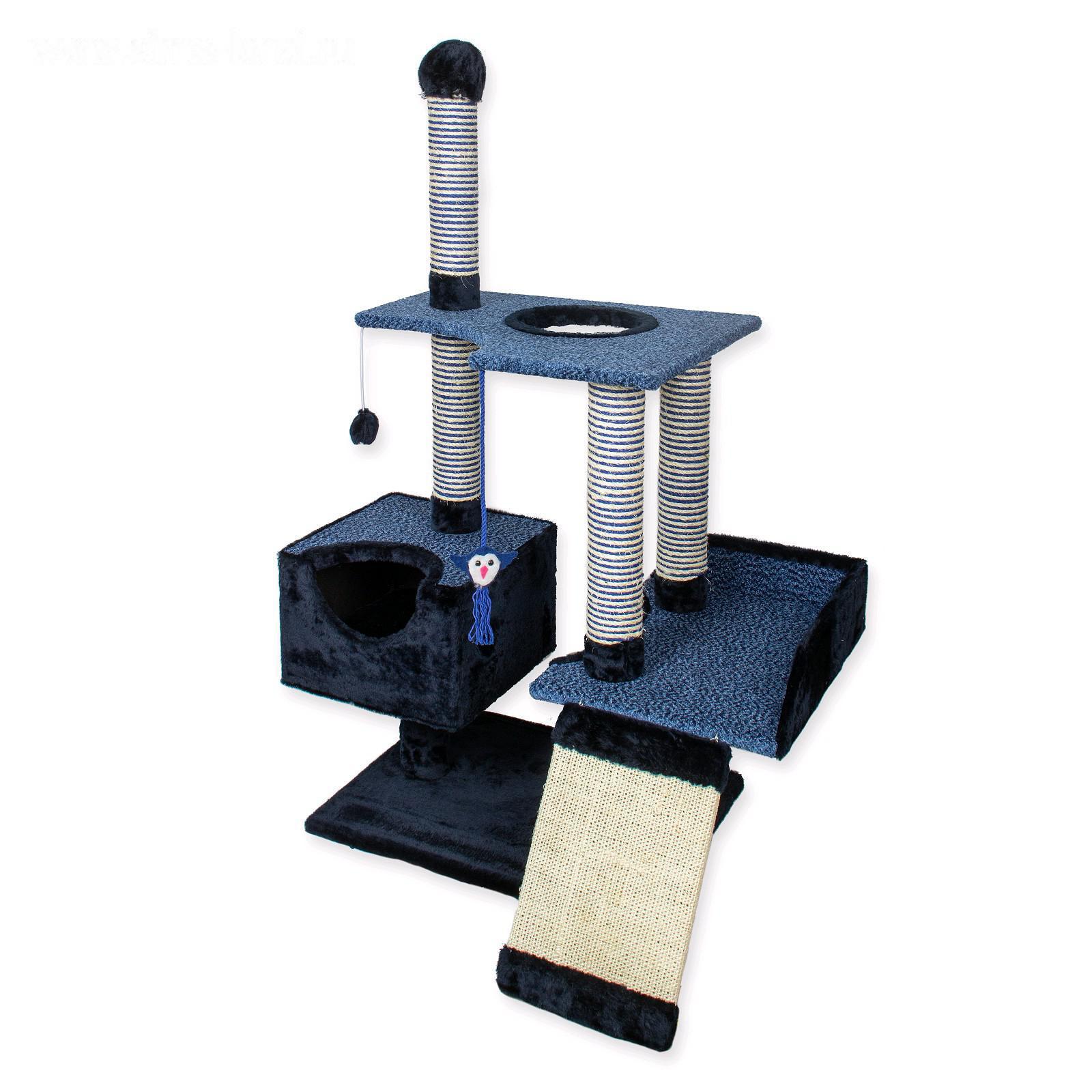 Комплекс для кошек "Зооник", многоуровневый с горкой, сизаль, 94 х 52 х 138 см, синий