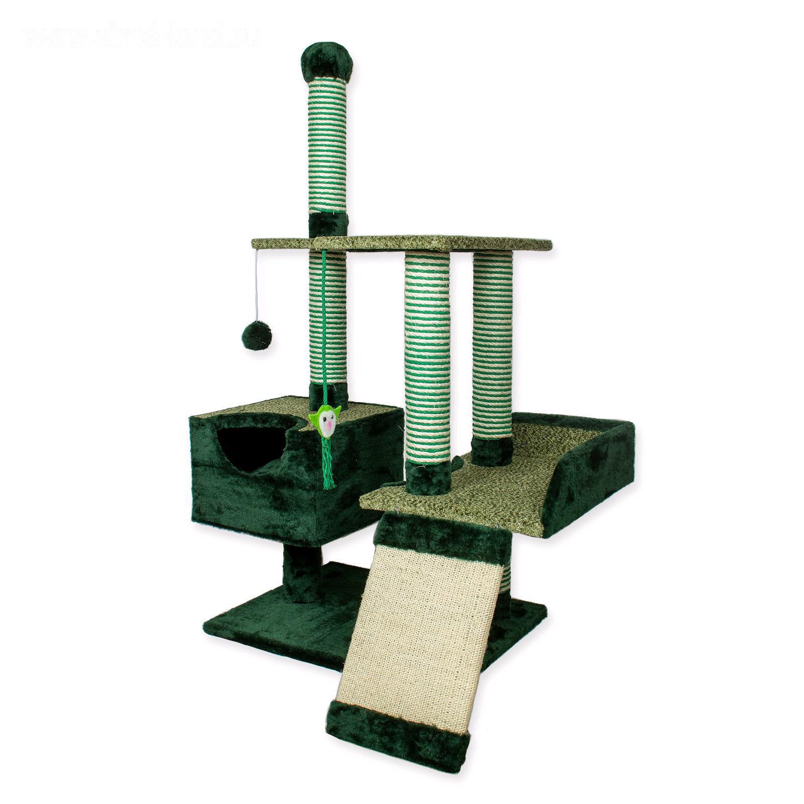 Комплекс для кошек "Зооник", многоуровневый с горкой, сизаль, 94 х 52 х 138 см, зелёный