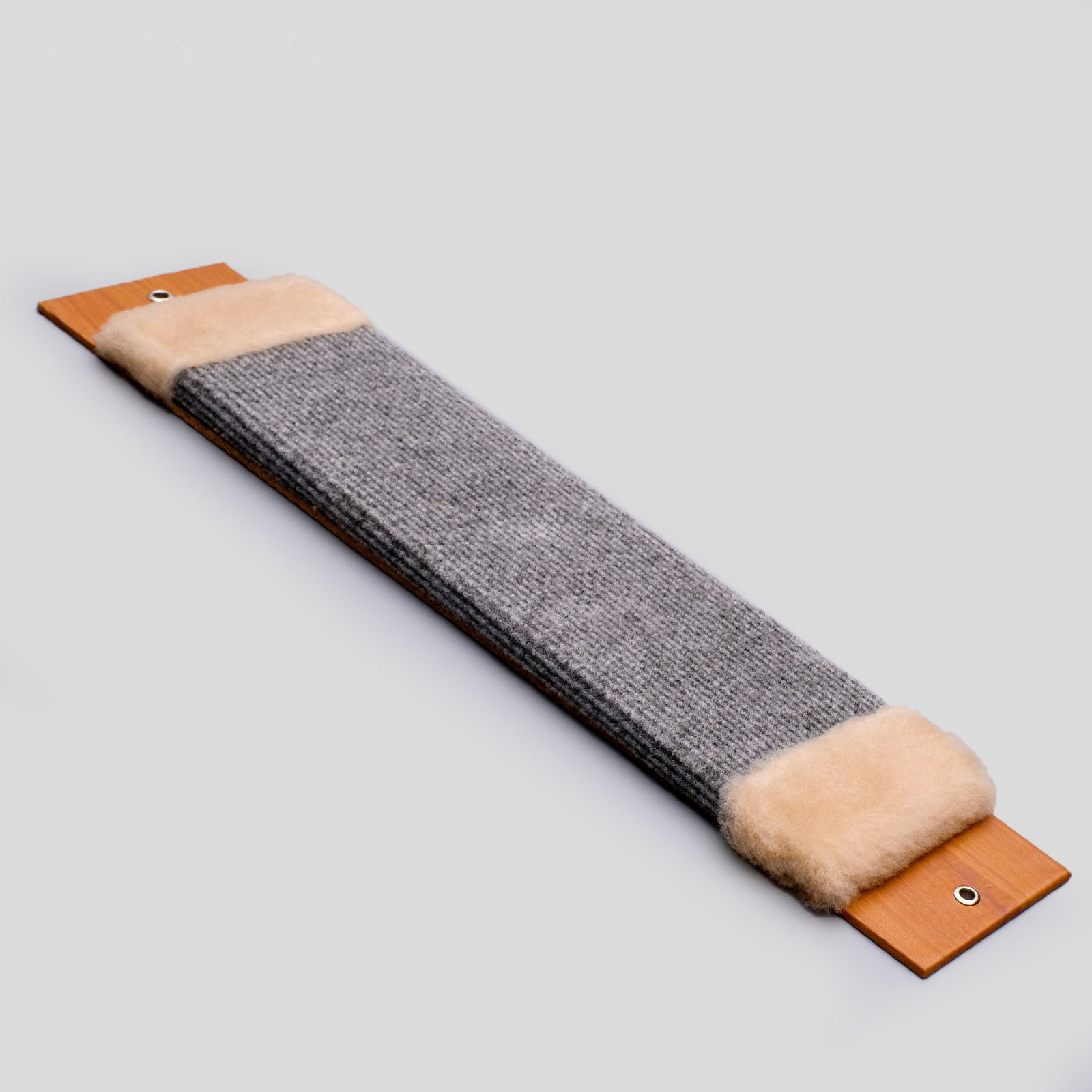 Когтеточка обита серым ковролином, не оставит равнодушным Вашего питомца это - практичный аксессуар для стачивания когтей у кошек и предотвращения их врастания.