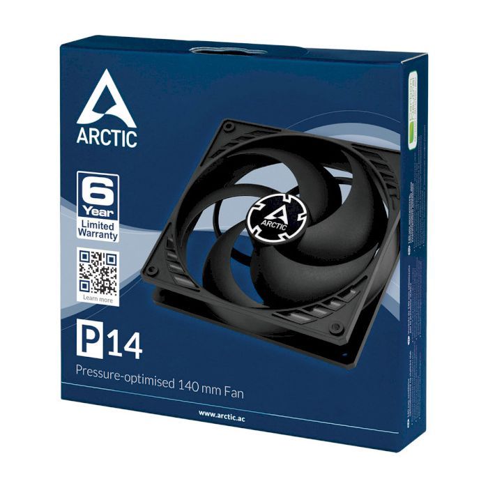 Корпусний вентилятор Arctic P14 — потужний повітряний потік і високий статичний тиск за низького рівня шуму. Має тривалий ресурс. Встановлення — корпус ПК, процесорний кулер.