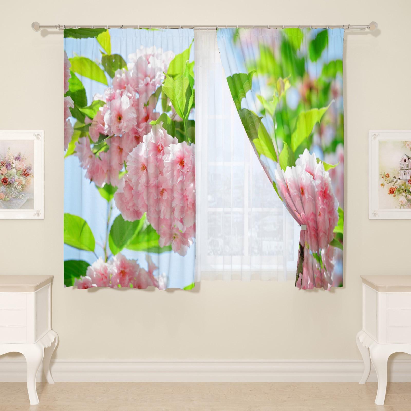 Фотошторы «Ветка японской розы», размер 145x160 см, 2 шт