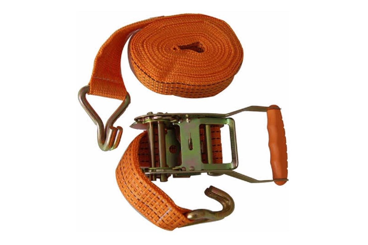 Ремень крепления груза с храповиком делает транспортировку объектов простой и удобной. Стальные крюк и храповик исключают самопроизвольное высвобождение груза.