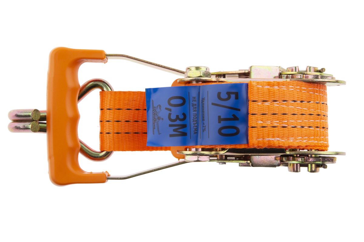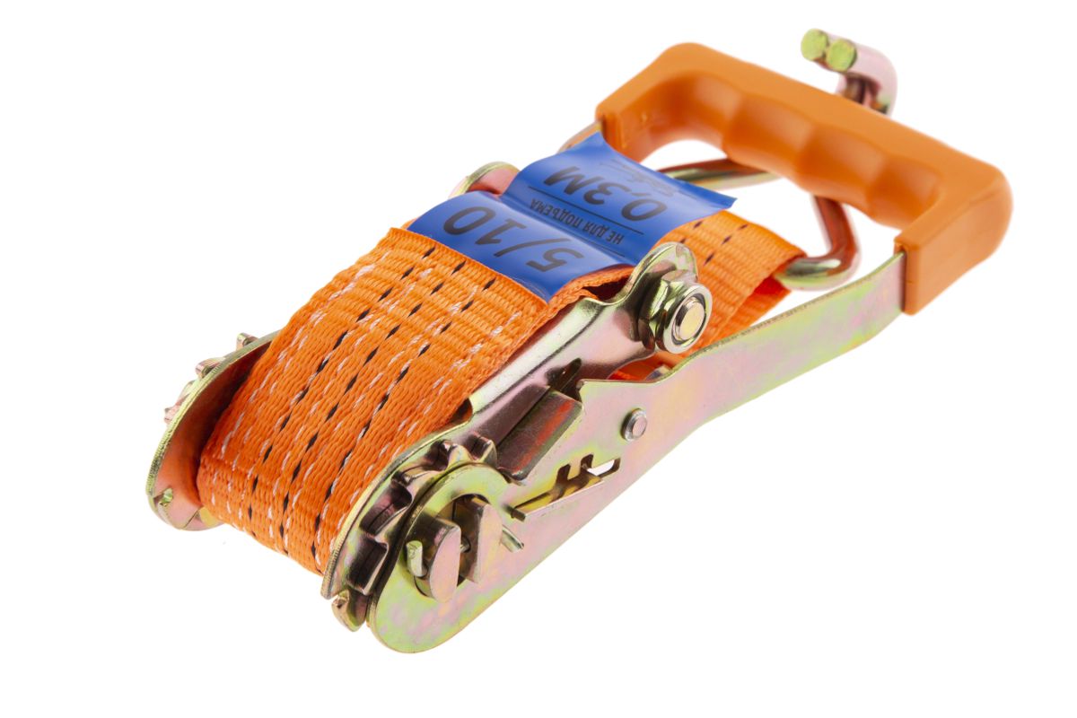 Ремень крепления груза с храповиком делает транспортировку объектов простой и удобной. Стальные крюк и храповик исключают самопроизвольное высвобождение груза.