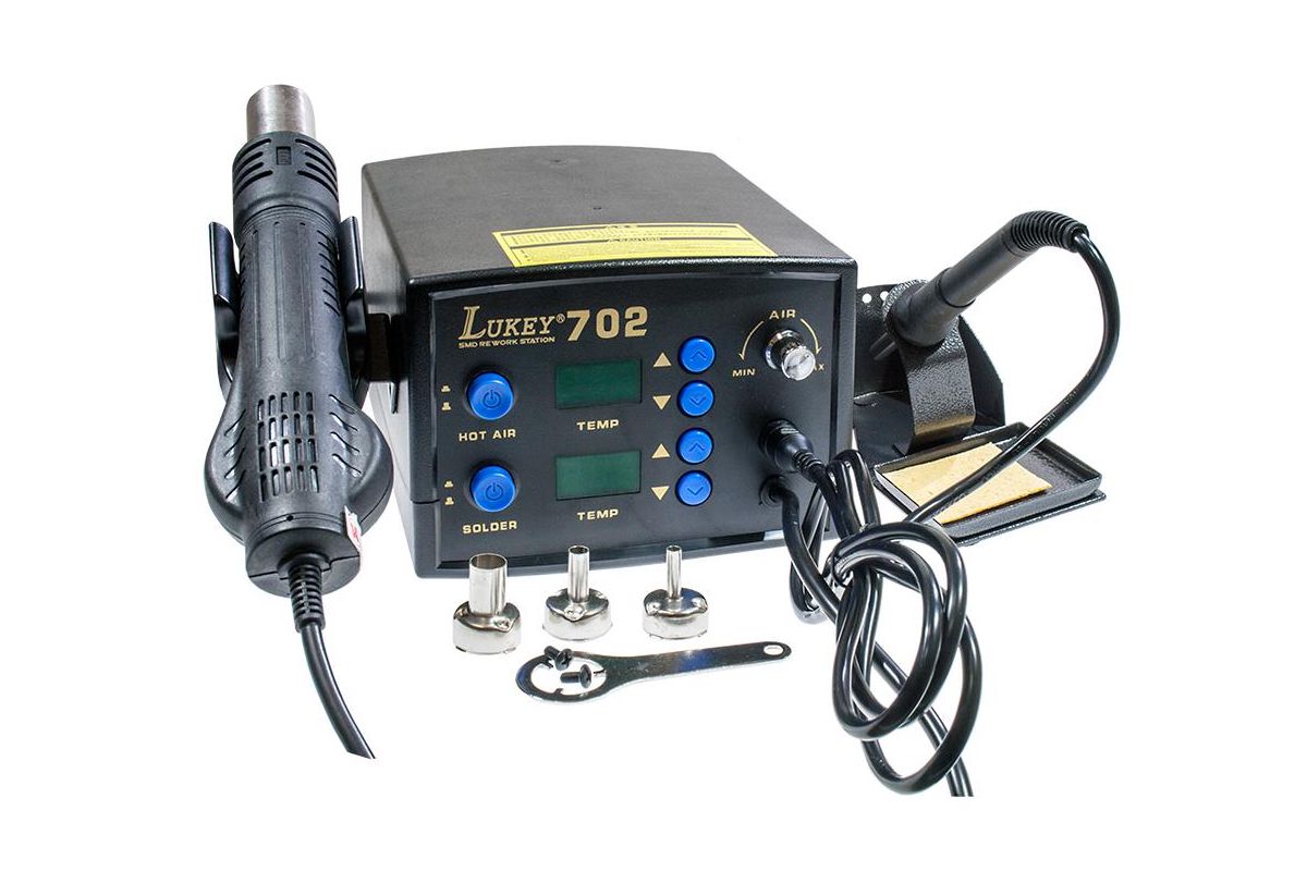 Компактная термовоздушная паяльная станция (фен + паяльник) с цифровой индикацией и широким диапазоном рабочих температур. Станция может быть использована для решения задач различной сложности. С успехом применяется для демонтажа или пайки различных компонентов в корпусах SOIC, PLCC, QFP, BGA и т.д. Подходит для сжимающихся гибких трубок, сушки, предварительного нагрева, пластической пайки.