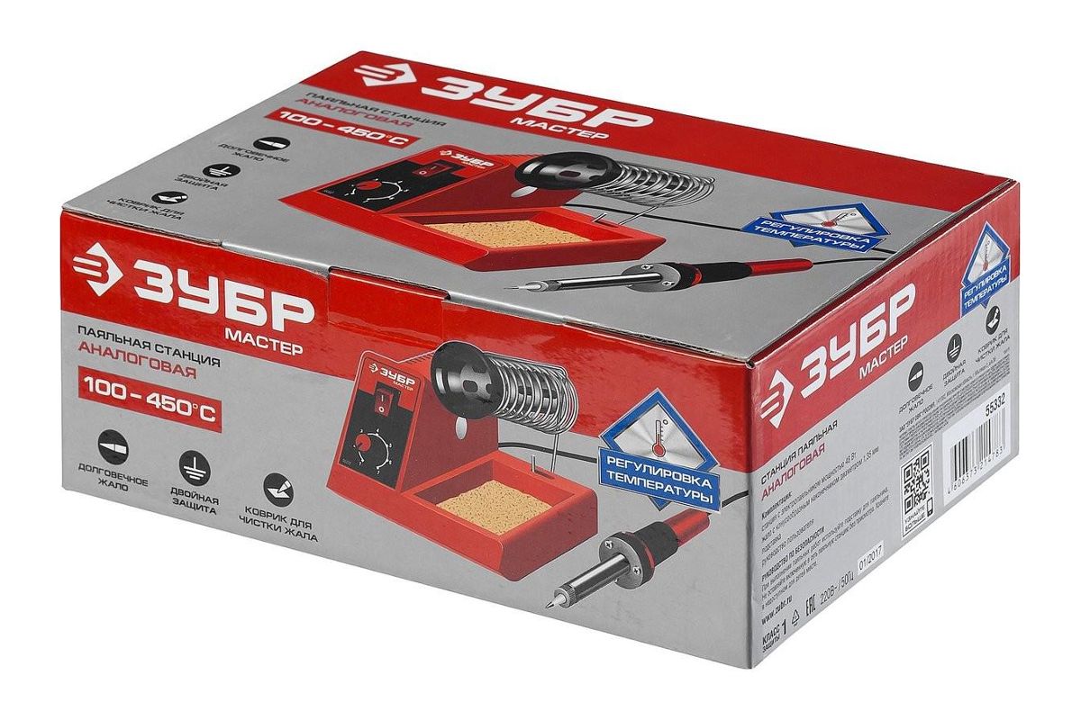 Паяльная станция ЗУБР МАСТЕР 55332 100-450°C подставка 2-х компонентная рукоятка 48Вт