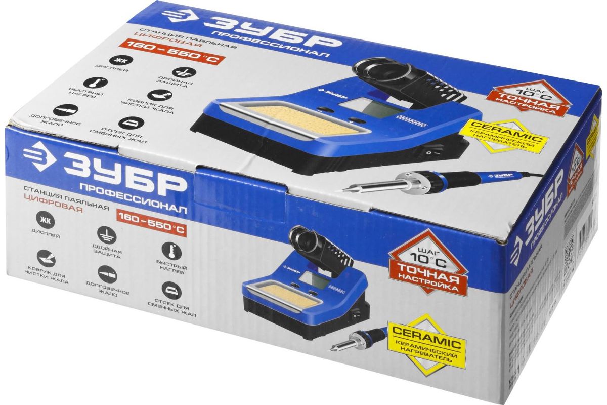 Паяльная станция ЗУБР 55334 профессионал цифровая с жк дисплеем диапазон 160-520°c 48Вт