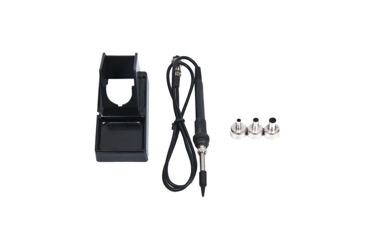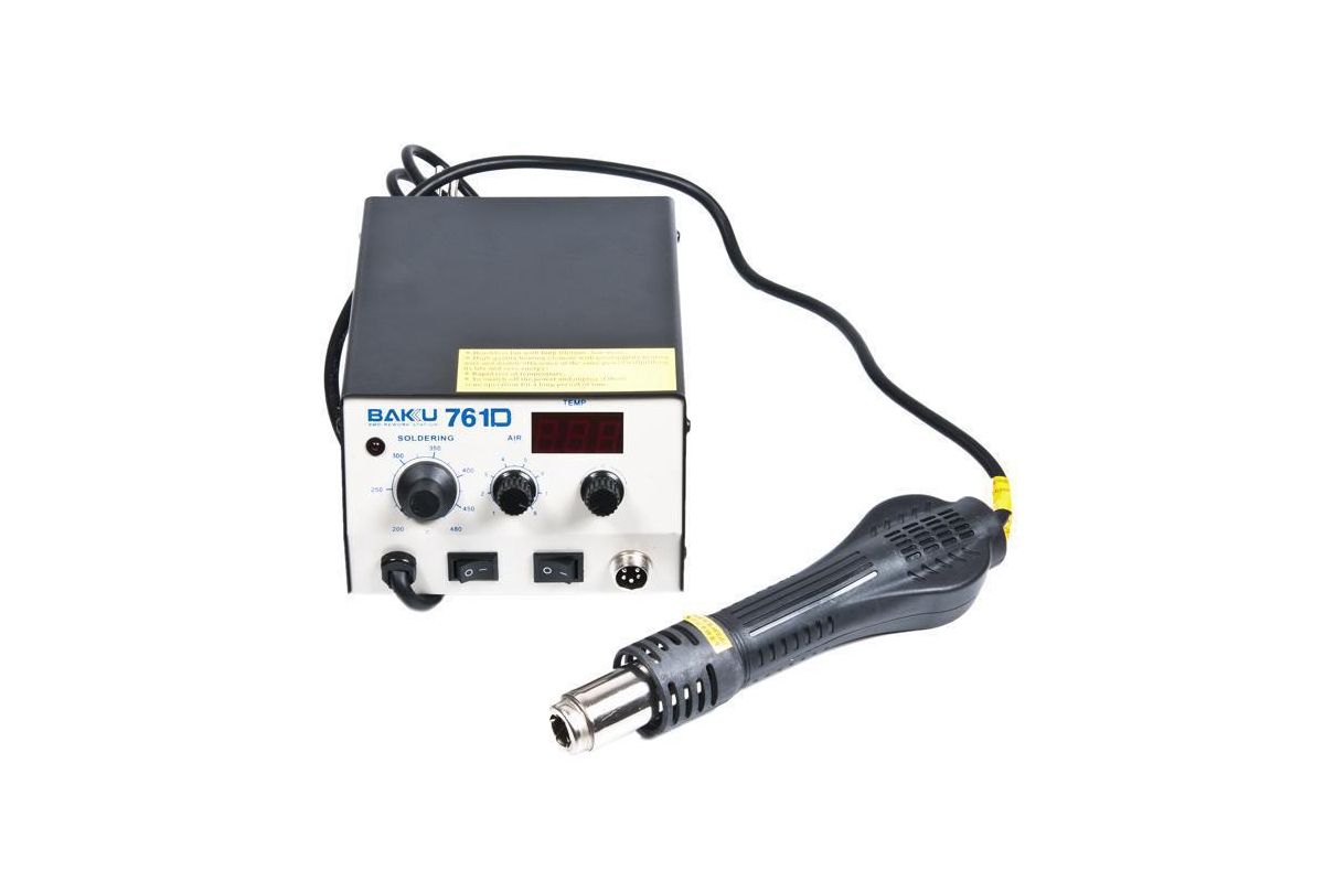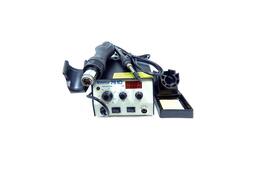 Паяльная станция, сочетающая в себе возможность пайки нагретым воздухом и обыкновенным паяльником. Имеет цифровое управление. Трехзначный светодиодный индикатор для отображения температуры нагретого воздуха. Управление температурой происходит с помощью замкнутой системы датчиков, микроконтроллер обеспечивает стабильность температуры.