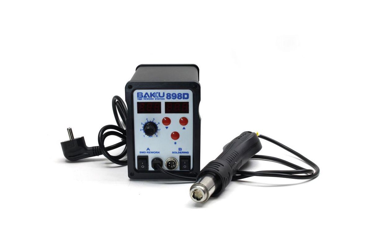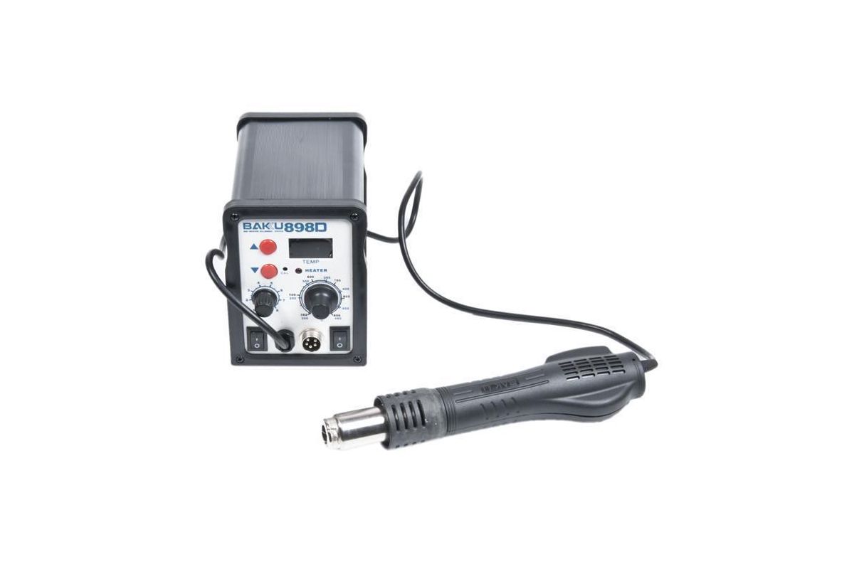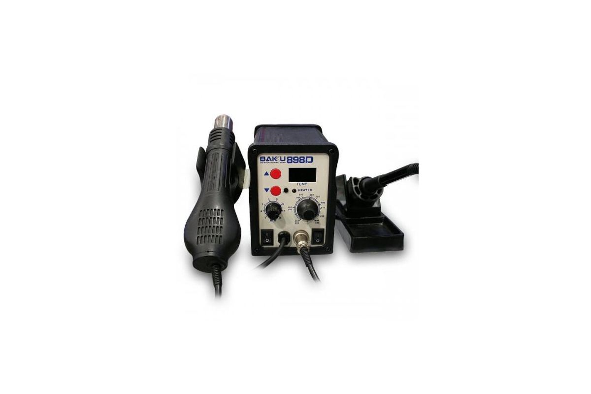 - Совмещает в себе возможность пайки нагретым воздухом и обыкновенным паяльником;