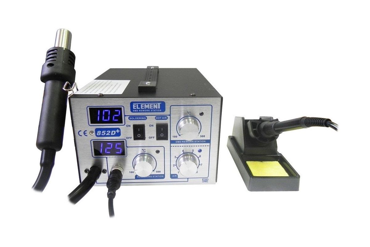 Паяльная станция ELEMENT 852D+ - компрессорная комбинированная двухканальная паяльная станция, которая отличается высокой производительностью и качеством пайки.