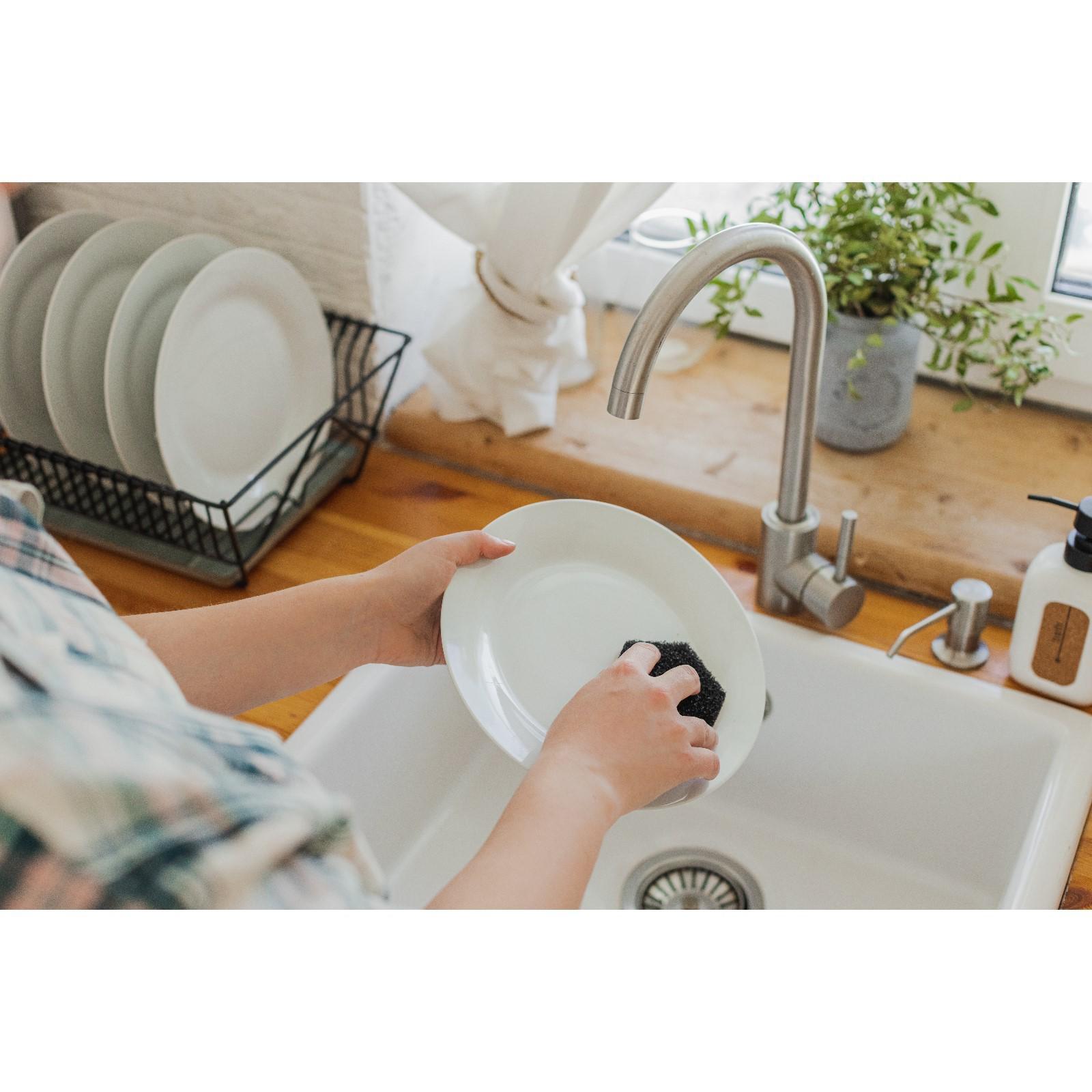 Помните: после каждого применения губку следует хорошо промыть под струёй тёплой воды, удалив всё моющее средство. Хорошо отжать и высушить во избежание разрушения волокон.