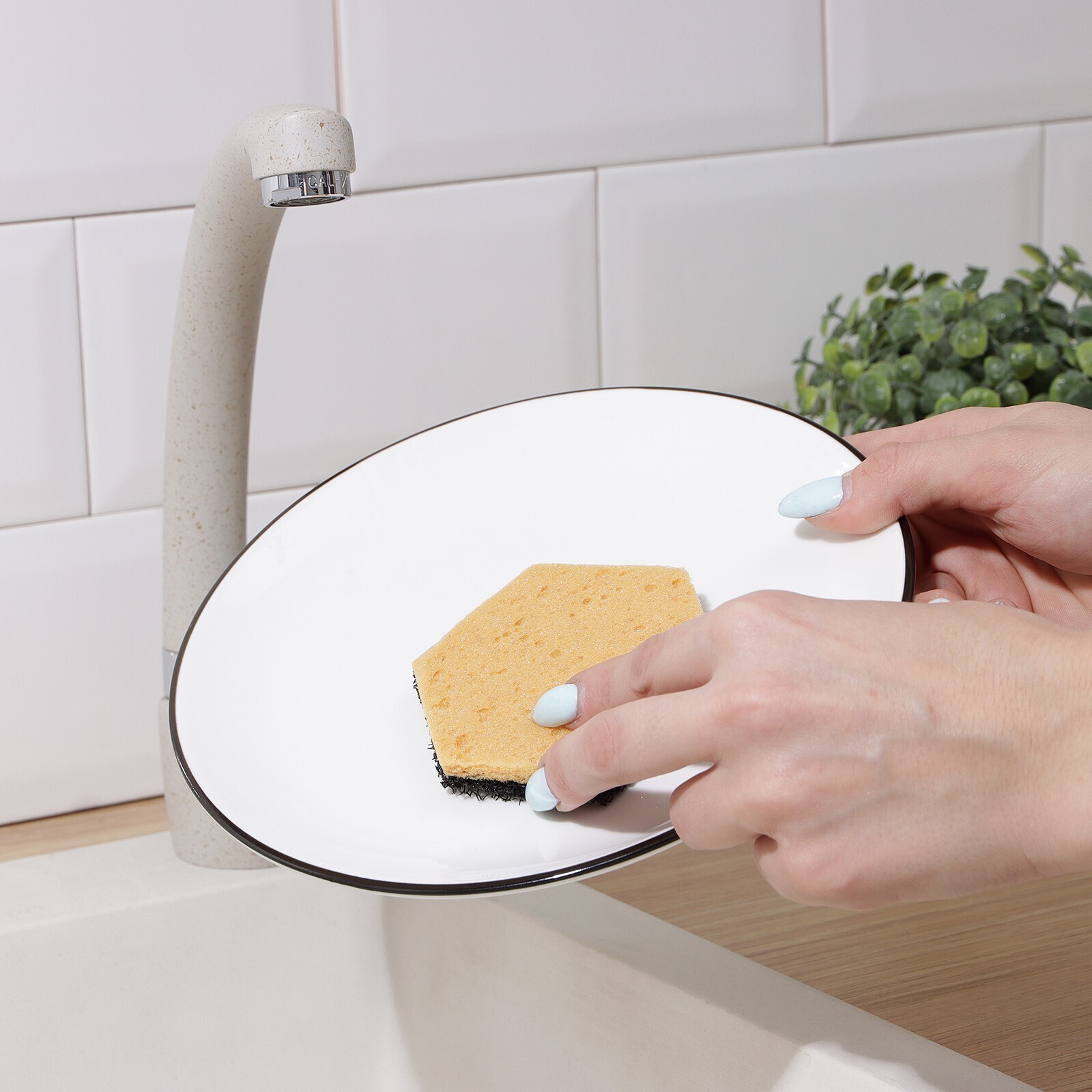 Губку можно использовать для мытья не только фаянсовой, керамической, металлической, но и посуды с тефлоновым покрытием.