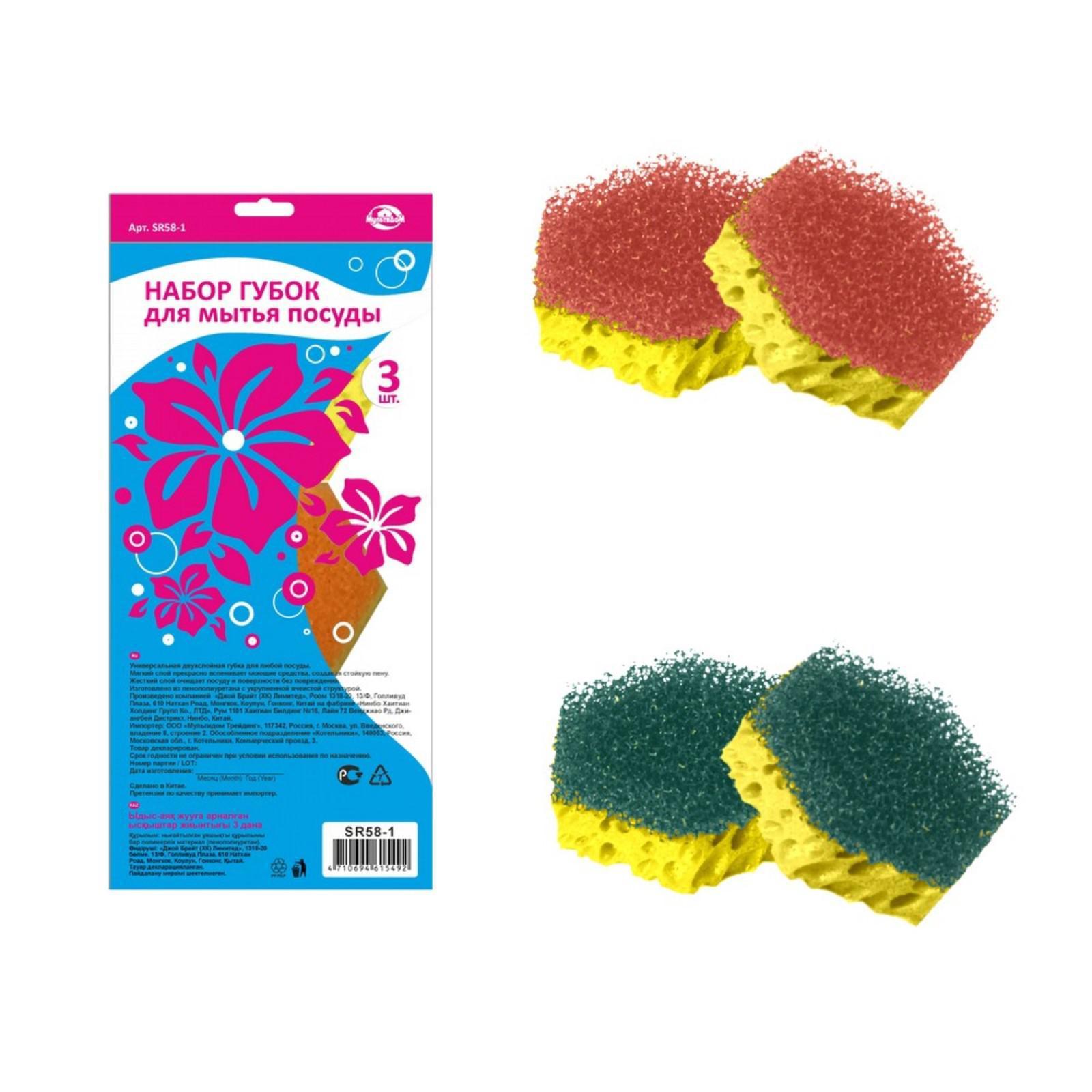 Набор губок для мытья посуды, 3 шт