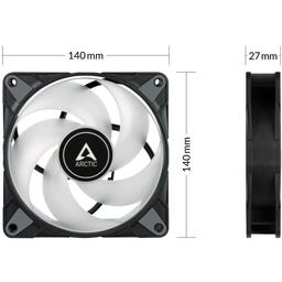 Arctic P14 PWM PST A-RGB працює з цілеспрямованим потоком повітря та високим статичним тиском. Він забезпечує надзвичайно ефективне охолодження, навіть при підвищеному опорі повітря.
