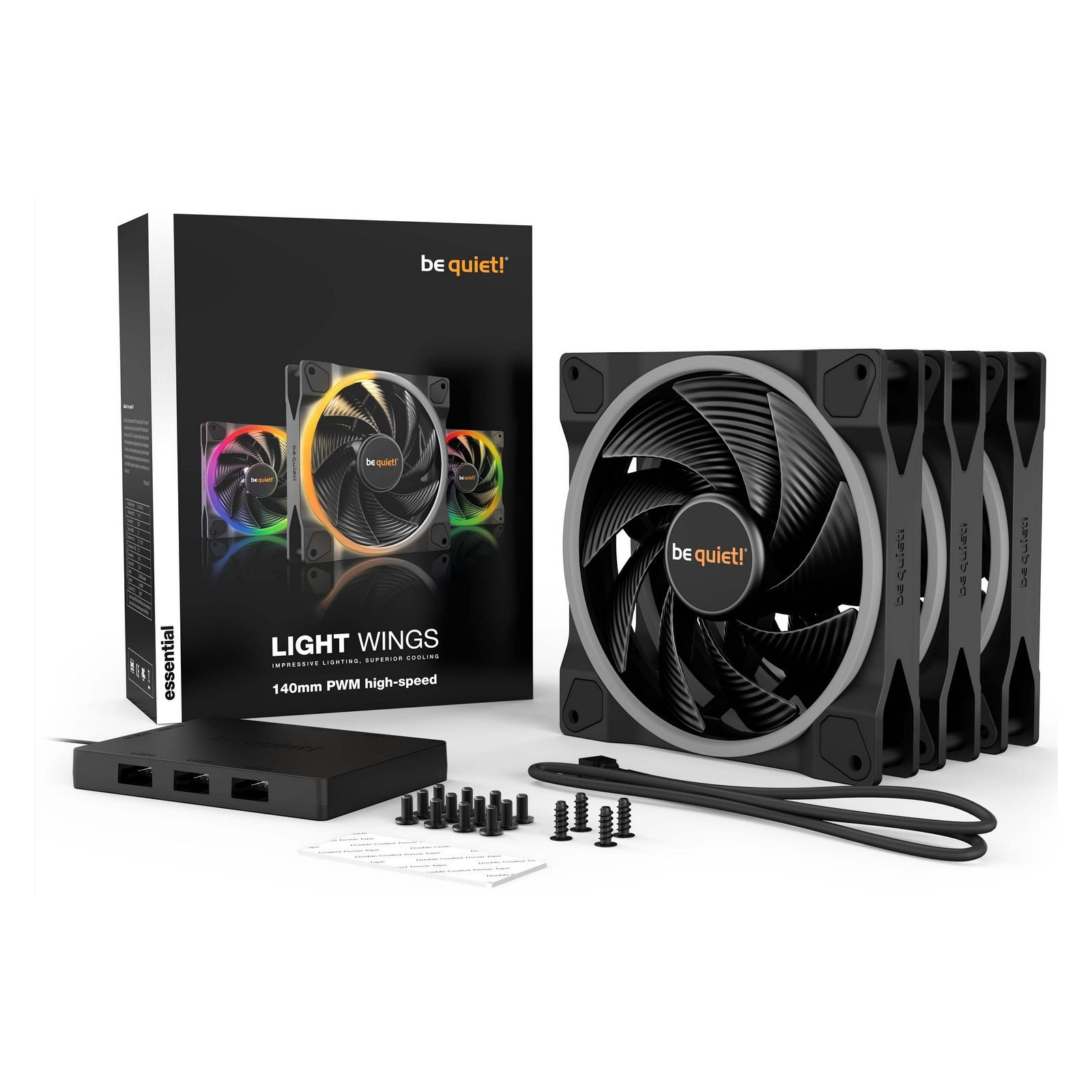 Три вентилятори Light Wings 140 мм PWM high-speed пропонують привабливу підсвітку для яскравого унікального зовнішнього вигляду ПК, високу продуктивність охолодження та безшумну роботу.