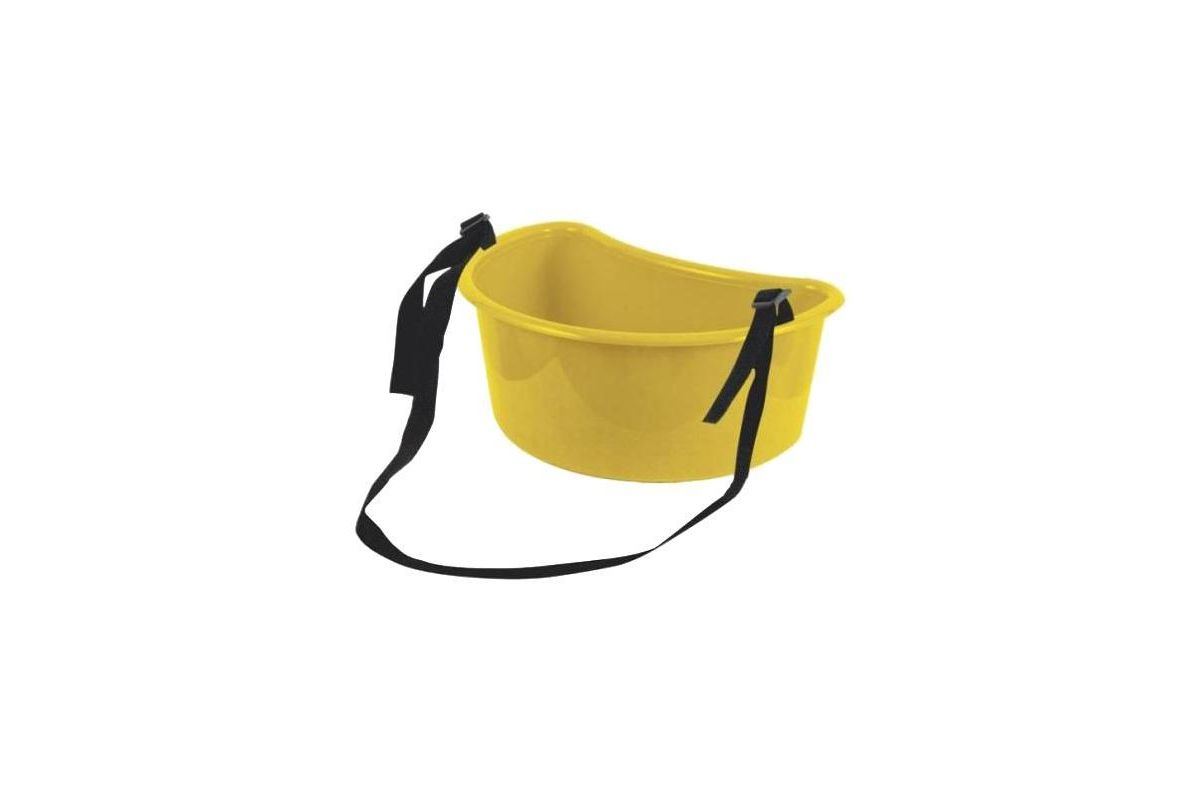 Специальная форма и наличие ремня обеспечивают удобное расположение ведра на теле человека во время работ и позволяет использовать обе руки при сборе урожая с деревьев и кустарников. Материал: пластик.