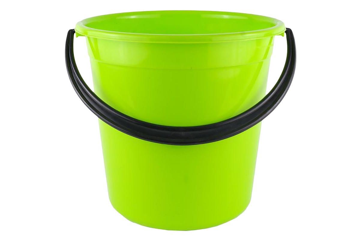 Круглое ведро изготовлено из прочного долговечного пластика.
