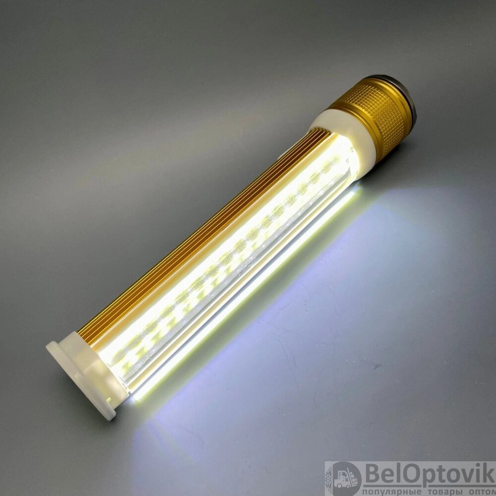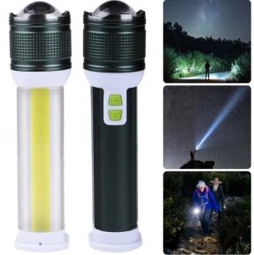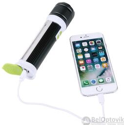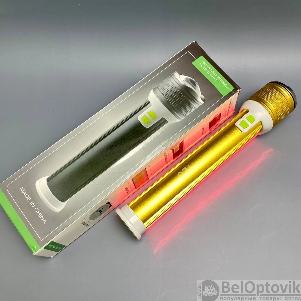 Ручной аккумуляторный фонарь Rotating Zoom Flashlight 128 LED боковая световая СОВ панель функционал Power Bank Черный