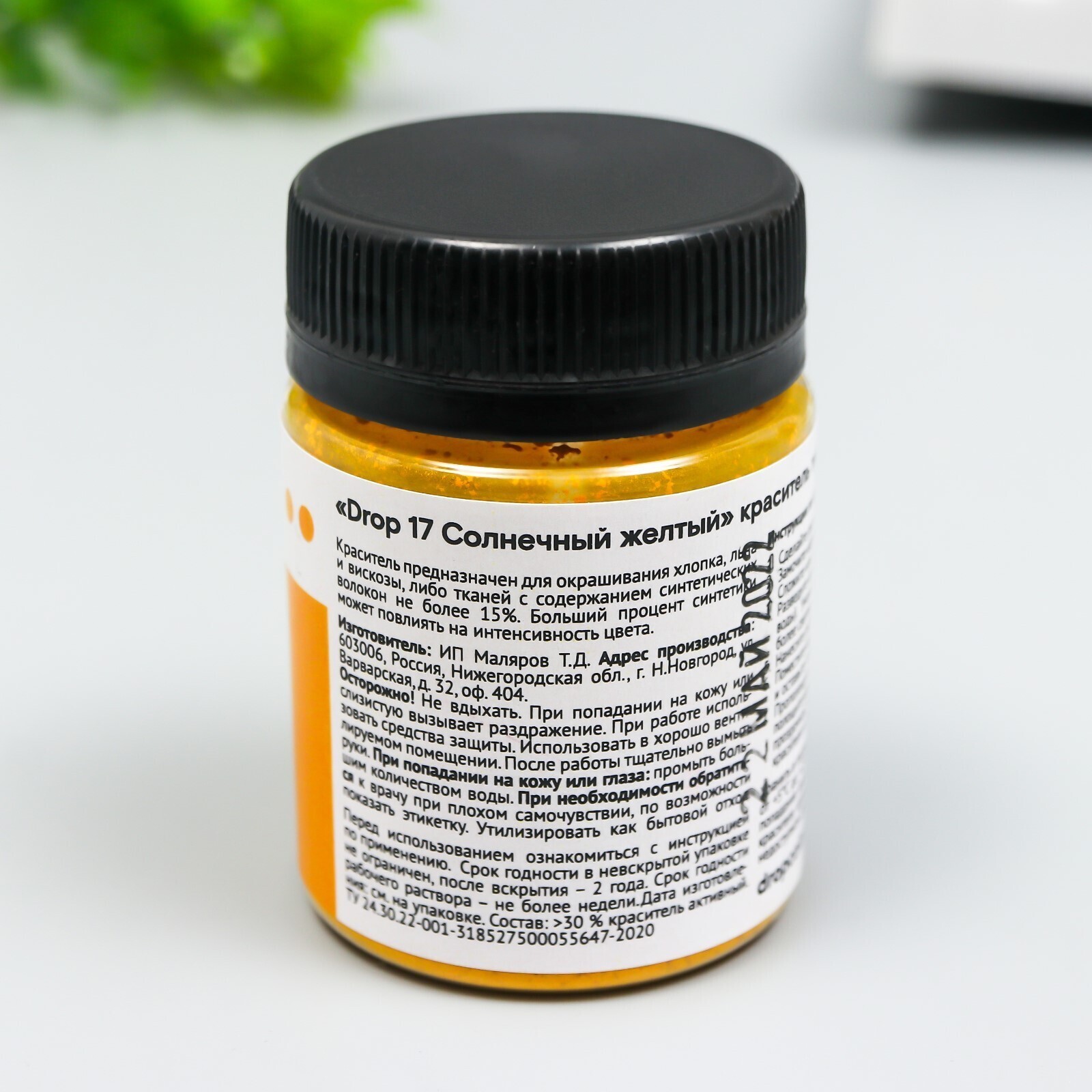 Краситель для ткани Dropcolor в технике тай-дай, 10 гр, цвет 17 Солнечный желтый