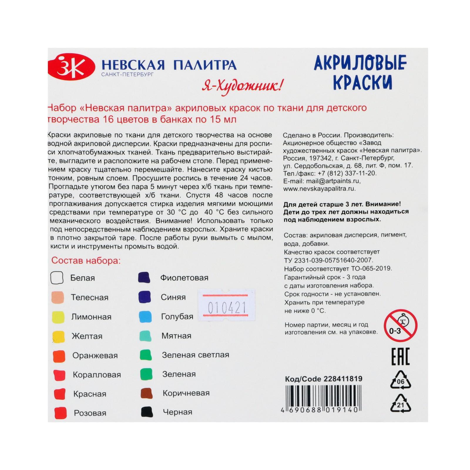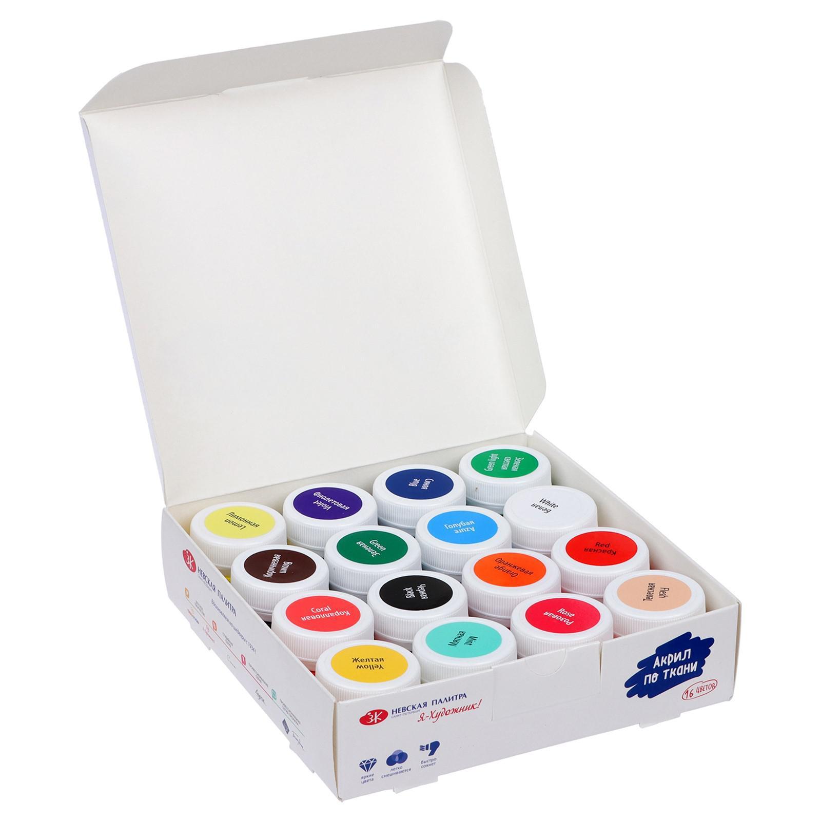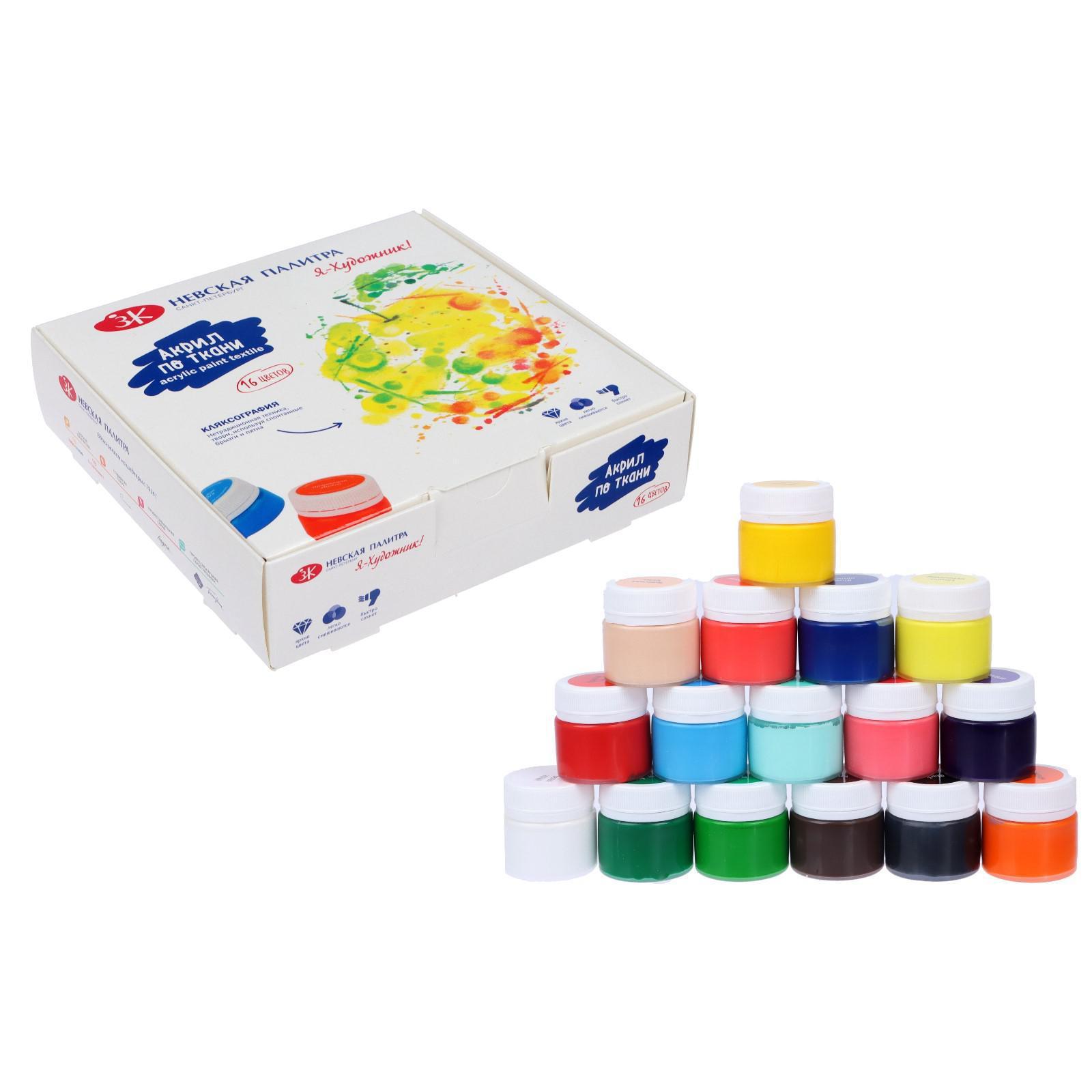 Краска по ткани, набор 16 цветов х 15 мл, ЗХК "Я - Художник!", акриловая на водной основе (228411819)