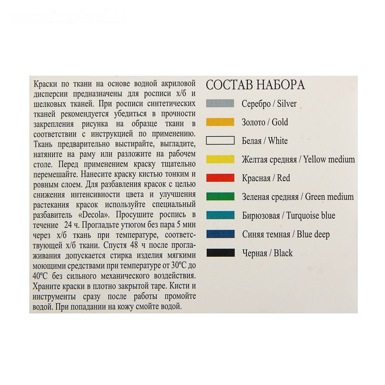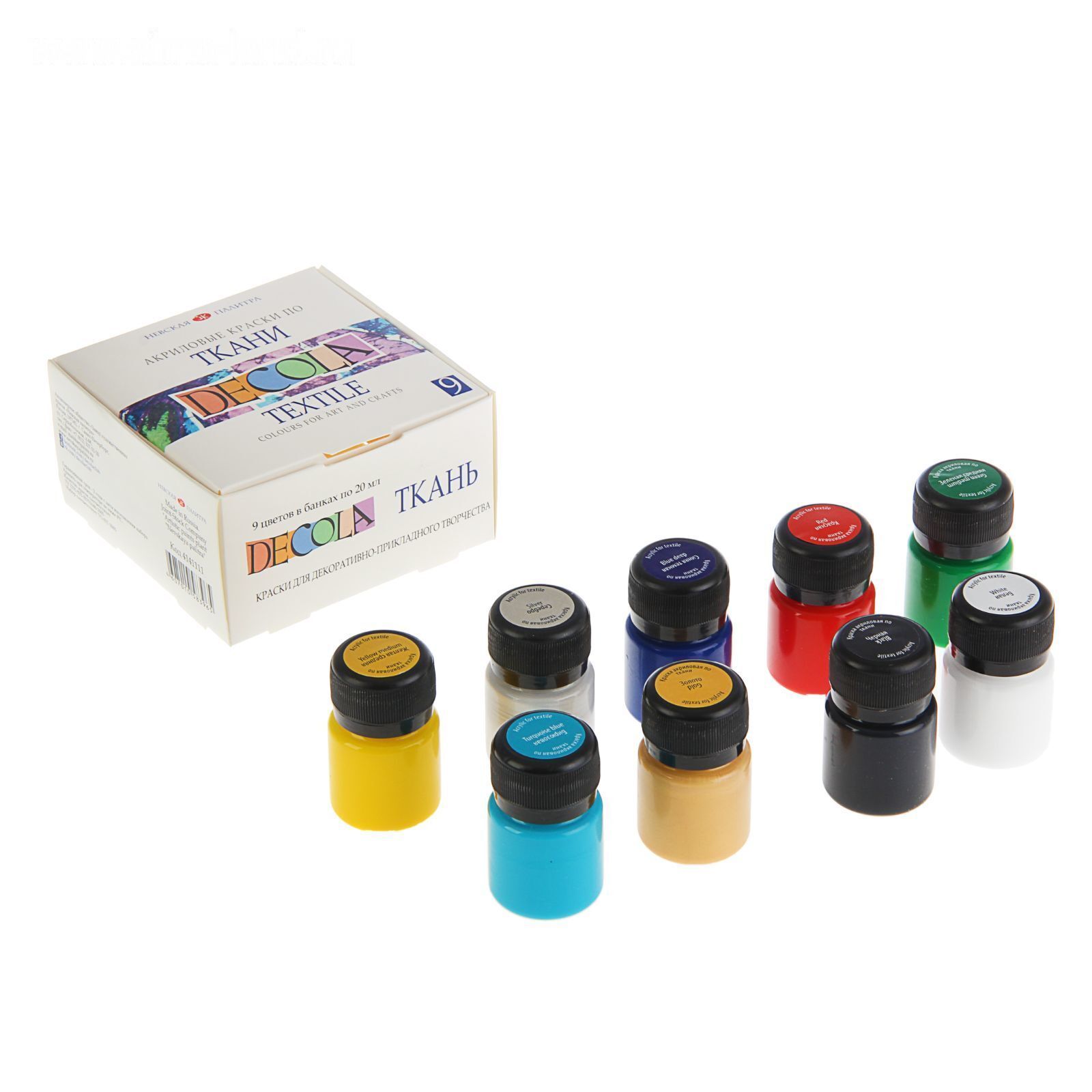 Краска по ткани, набор 9 цветов х 20 мл, ЗХК Decola, акриловая на водной основе (4141111)