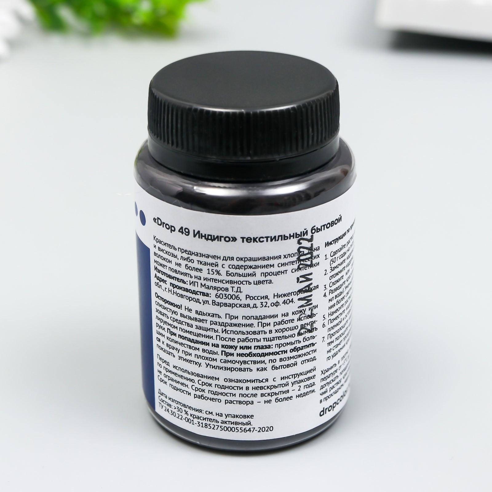 Краситель для ткани Dropcolor в технике тай-дай, 50 гр, цвет 49 Индиго