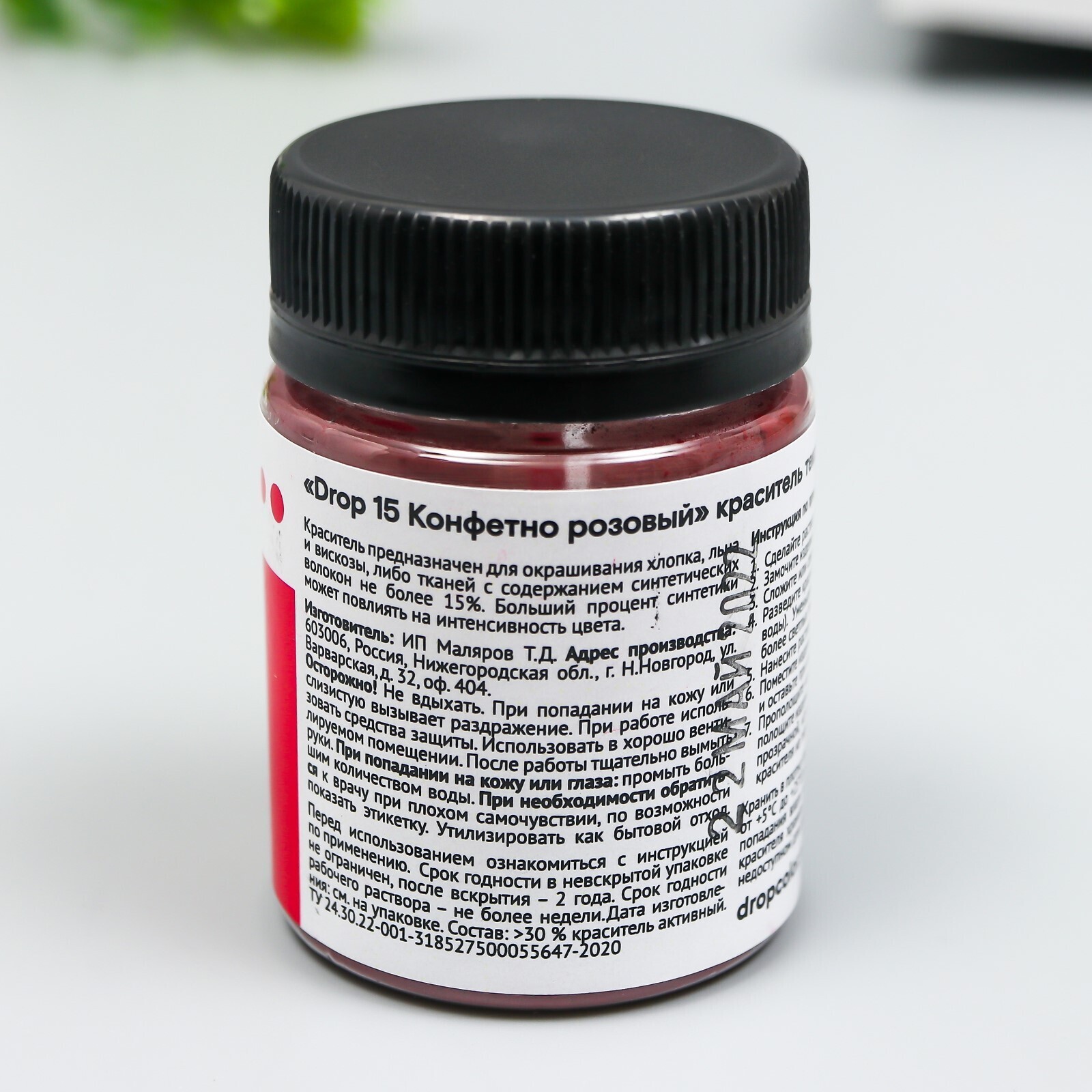 Краситель для ткани Dropcolor в технике тай-дай, 10 гр, цвет 15 Конфетный Розовый