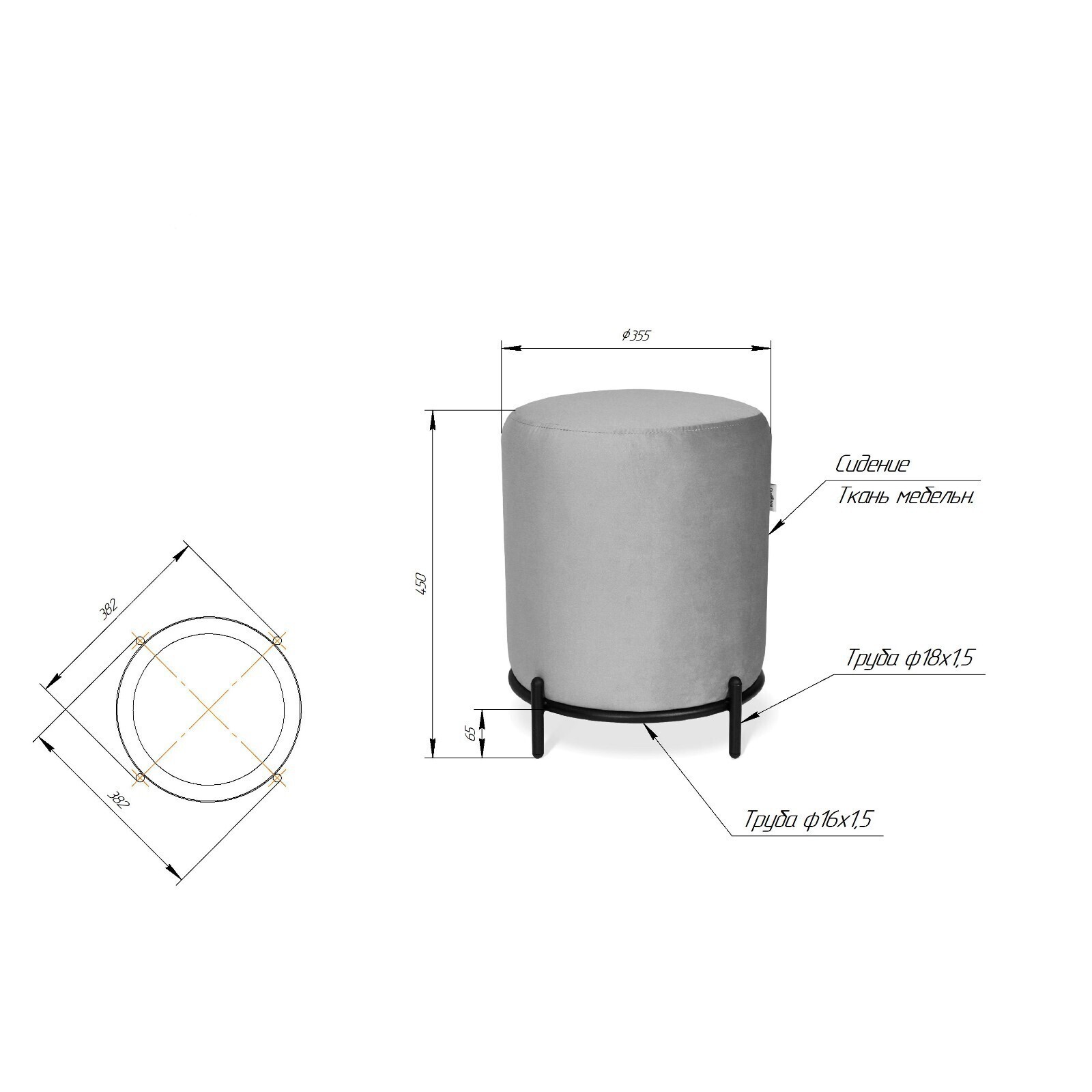 Сидение выполнено из микровелюра с мягким наполнителем.