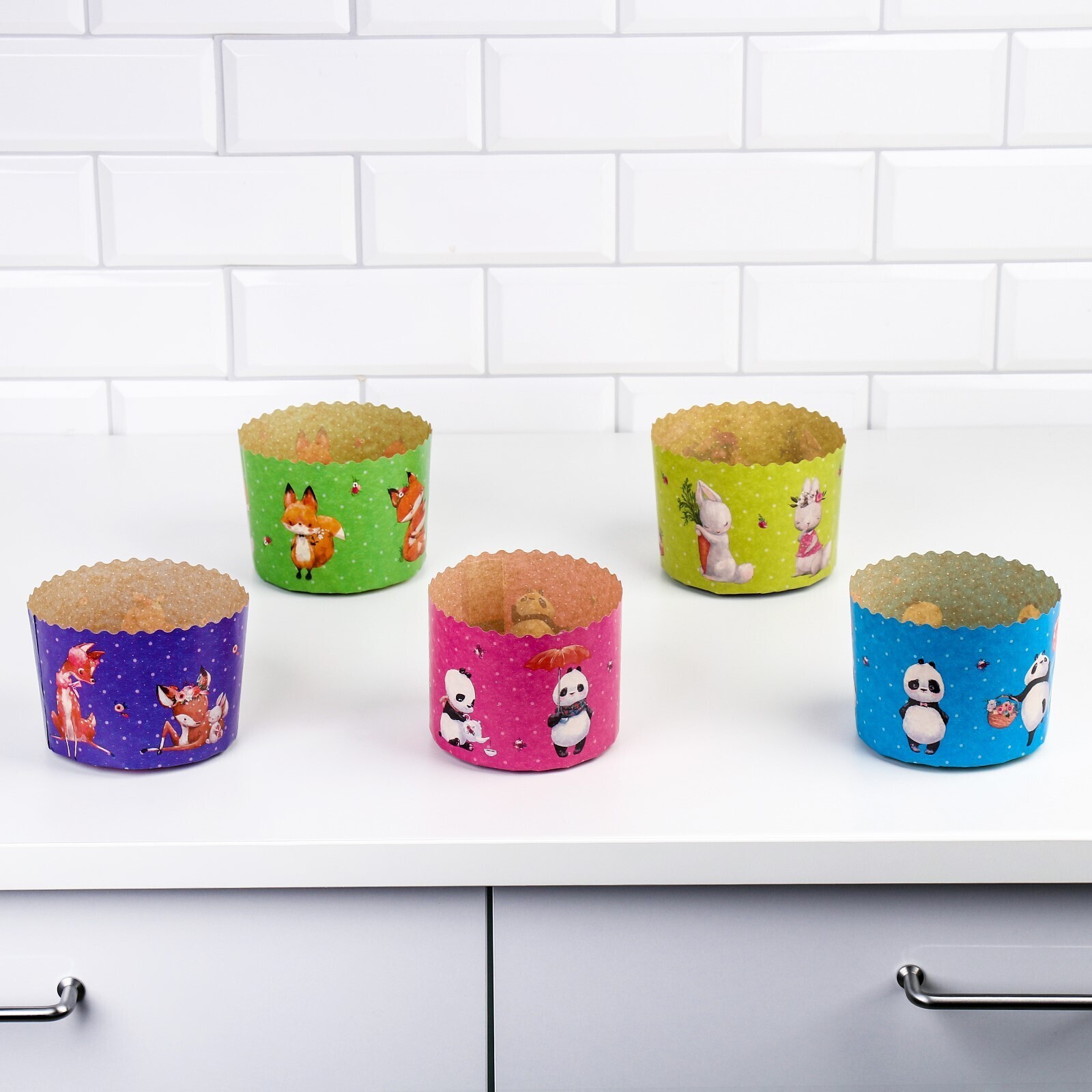 Форма бумажная для кекса, маффинов и кулича "Зверята" 110 х 85 мм (фасовка 1900 шт)